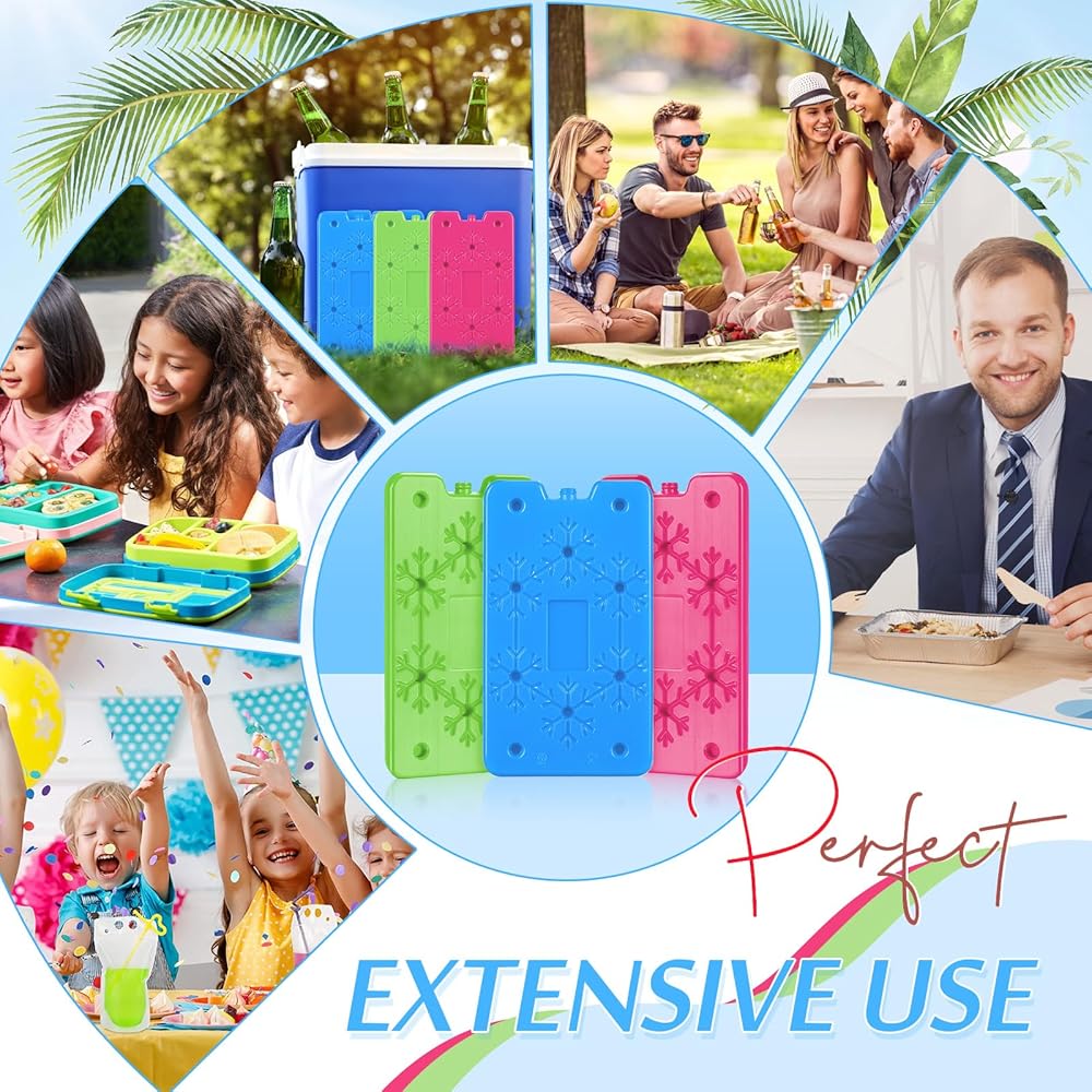 【Convenient & Usage】The cooler ice packs reusable conveniently accommodates various types of lunch bags, lunch boxes, coolers, and grocery totes.It is great for keeping food, drinks while camping, hiking, fishing, picnics and barbecues.