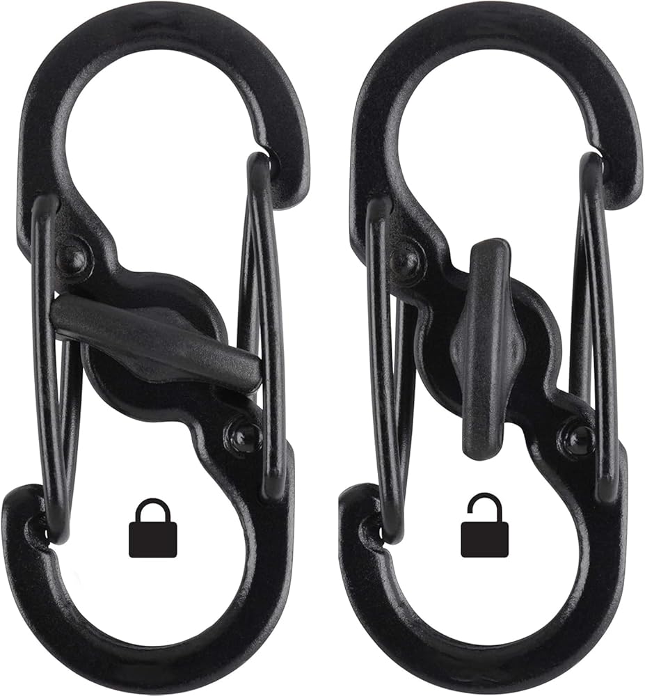 2 Pack MicroLock Stainless Steel with Locking Dual Sided Gates Keep Keys Secure with Carabiner Key Holder Black