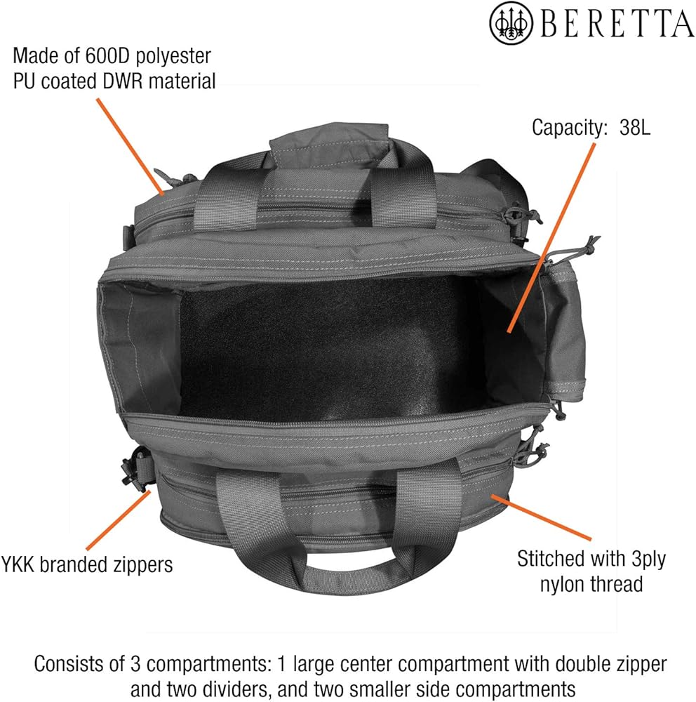 • OPTIONS TO CARRY - You can carry the Beretta Range Bag either by the short top carry handles or the longer adjustable shoulder strap which can be adjusted to suit the shooter