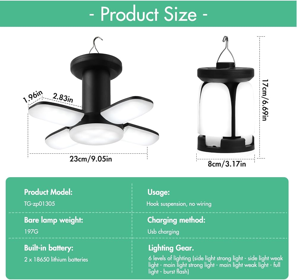 ✔ IPX4 waterproof LED tent lights with foldable design, easy to carry, very suitable for outdoor activities, camping, emergency lighting and maintenance, etc.