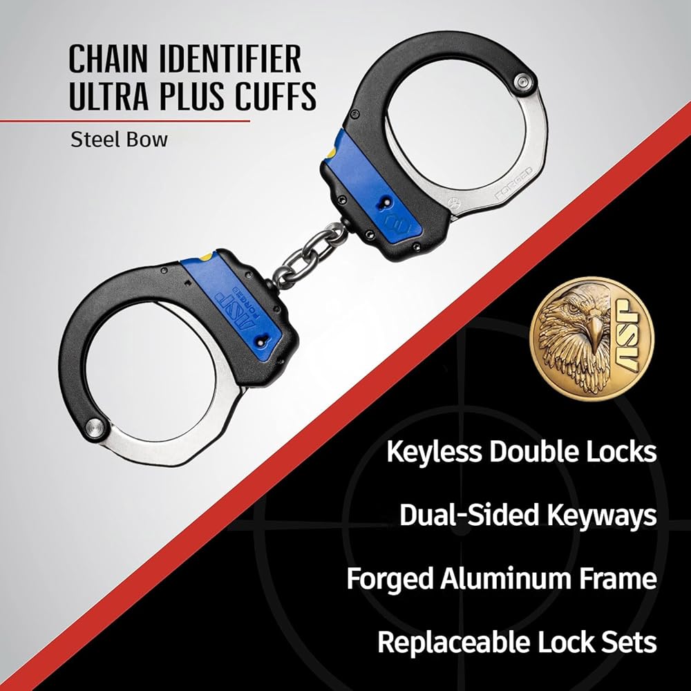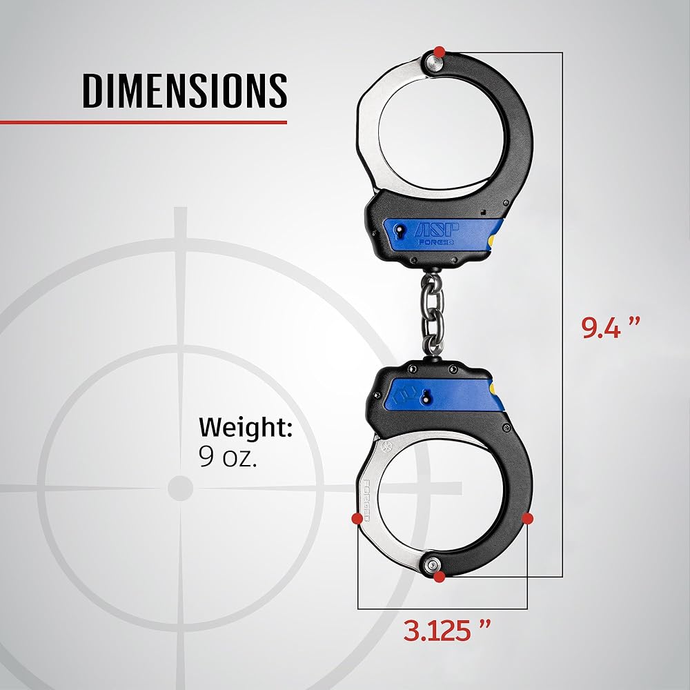ASP HANDCUFFS: The unique frames of these strong, lightweight handcuffs are forged from 7075 T6 ordnance-grade aluminum with smooth, rounded edges for safety.