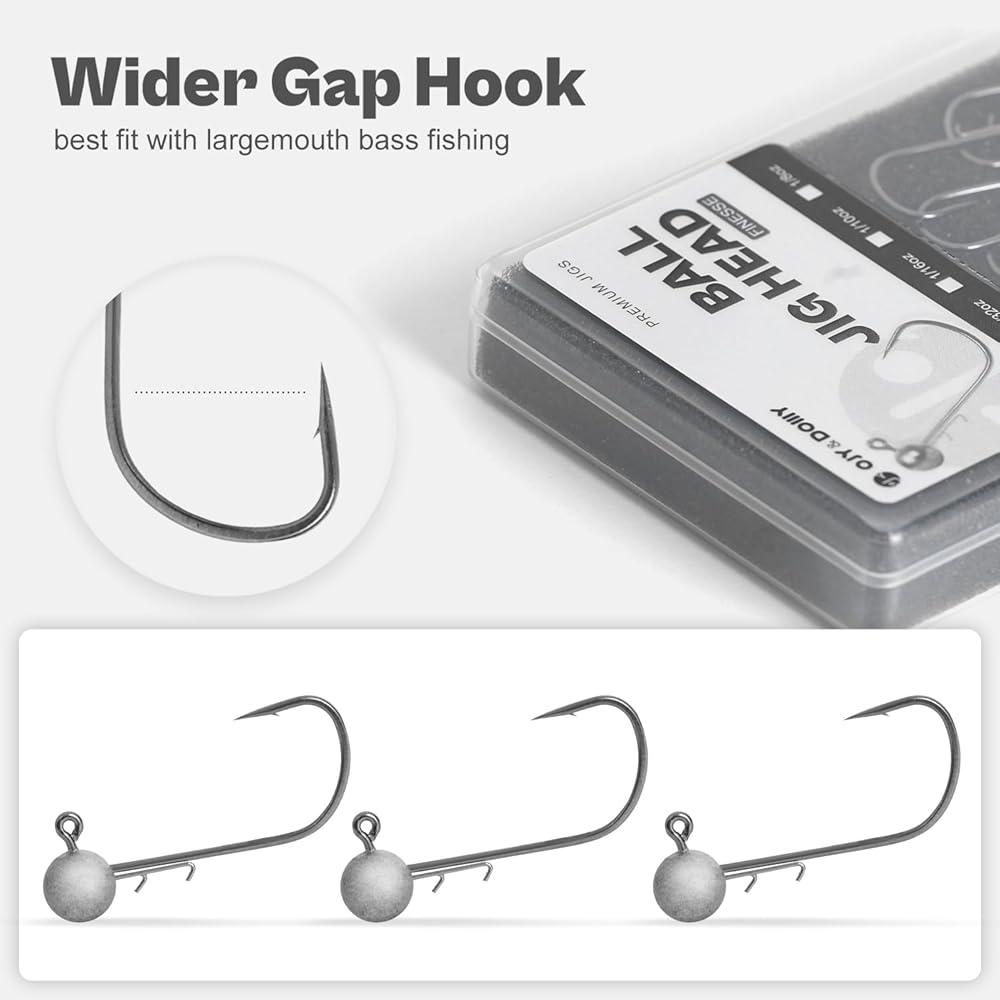 OJY&DOIIIY Finesse Inch Wacky Round Ball Jig Heads Kit is good choice for fishing bass, walleye, perch, crappie, etc.
