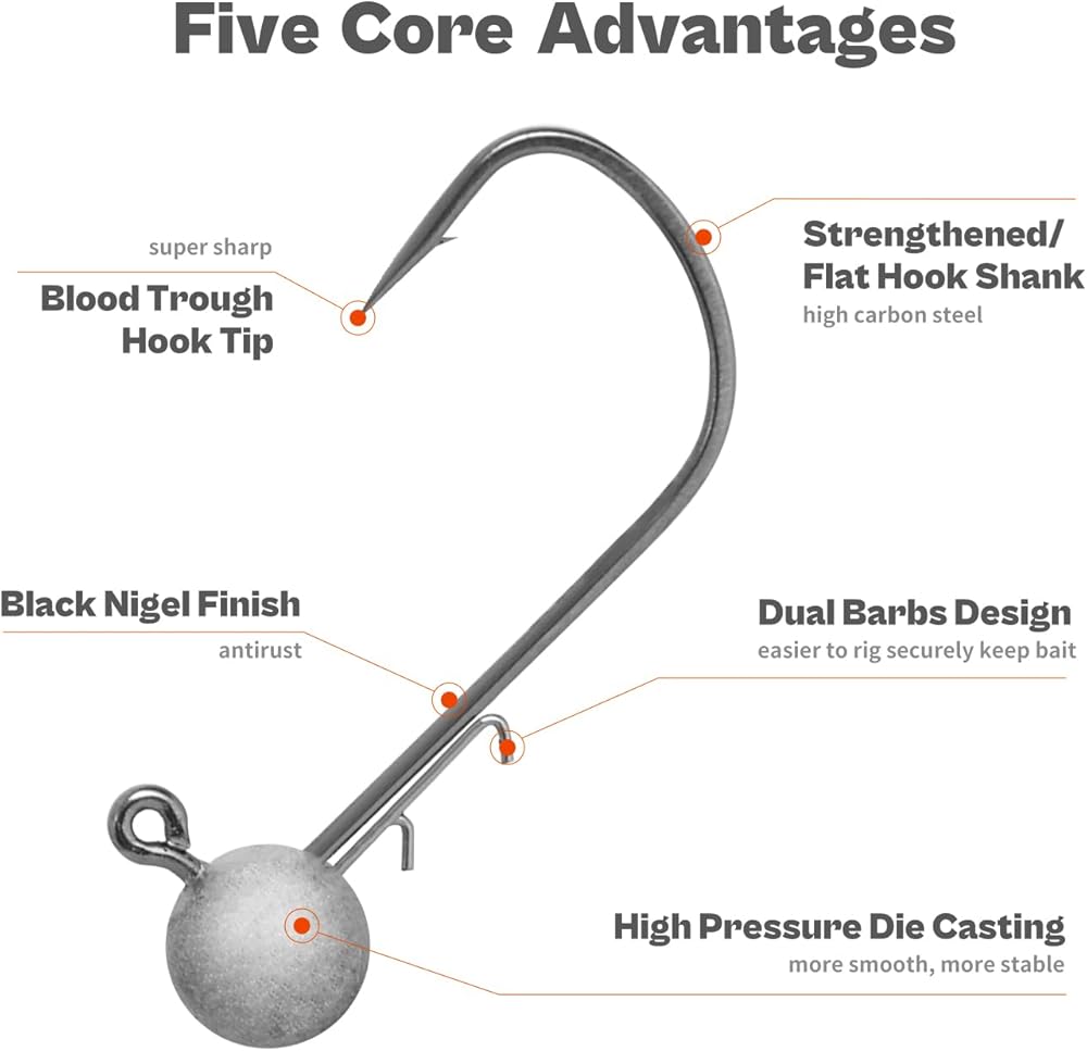 - 20 jig heads per pack, available in 1/48 1/32 1/16 3/32 1/8oz weight for most of finesse scenarios