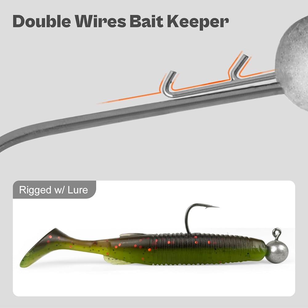 - Easier to rig and more secure double wire bait keeper design