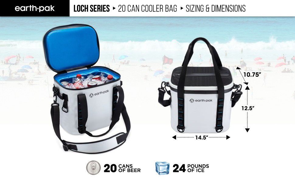 COMFORTABLE TO CARRY & EASY TO LOAD : Equipped with one padded detachable shoulder strap and double handles for easy carry when you are on the go. Wide mouth opening makes for easy loading and visibility to quickly locate your cold eats and drinks. Capacity to hold 20 cans. Sizable enough to fit a day's worth of beverages and food. Perfect for a day at the beach, BBQ picnics, lunches, paddleboarding, road trips, tail-gating and hiking.