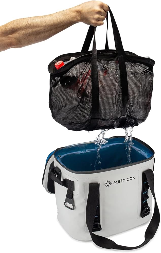 INCLUDED ICEOLATE TOTE: First of its kind, a detachable interior mesh tote is included in every cooler. This accessory acts as a normal valve would on an ice chest. Simply lift the tote up with all your food and drinks inside to allow any excess water to drain out within the cooler. Once all the water has been collected at the bottom of the cooler pour it out and add in a fresh batch of ice.