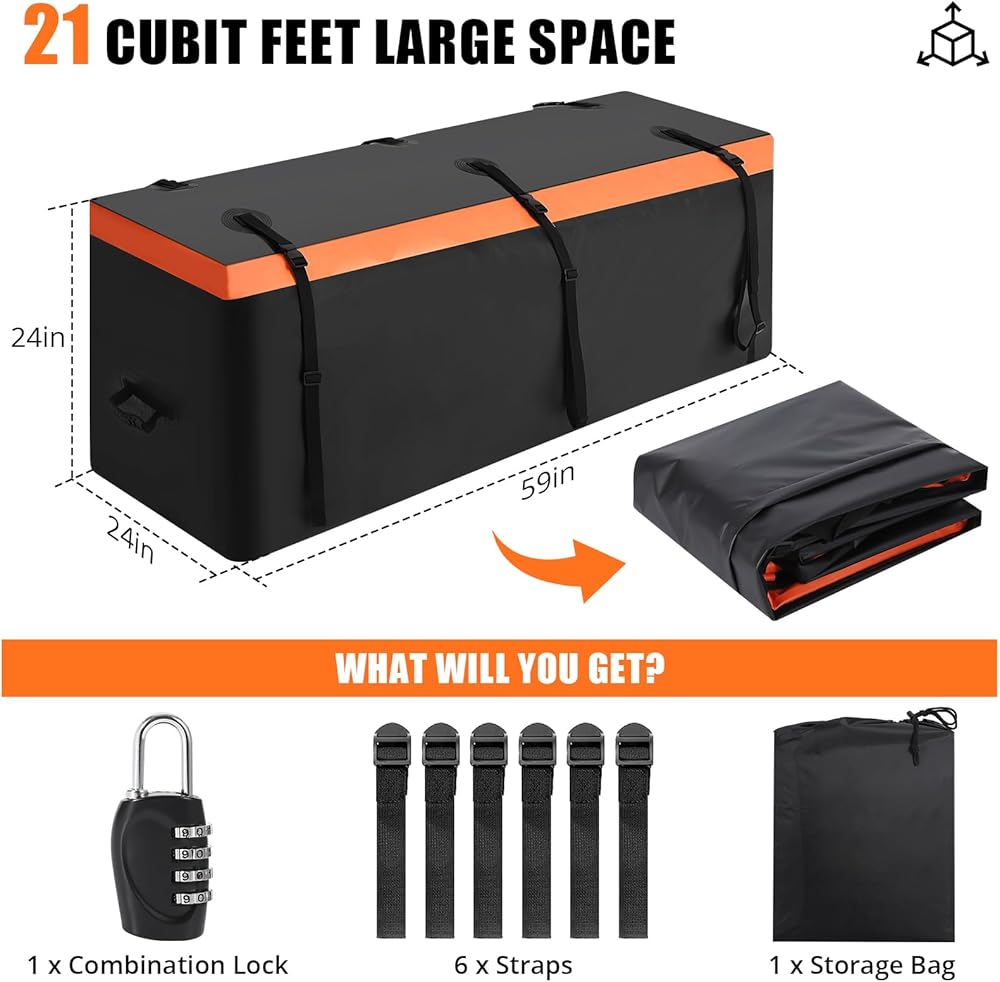 - **Versatile Travel Solution**: Perfect for hitch carrier baskets, truck beds, and SUVs, this cargo bag is ideal for road trips and camping. It accommodates various items like luggage, tents, making it essential for all your adventures.