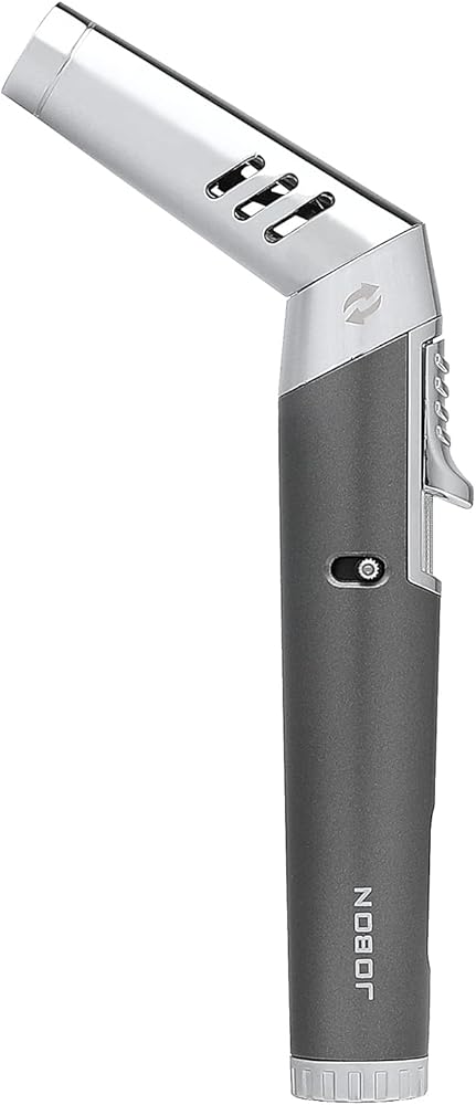 JOBON Torch Lighter, Adjustable Lockable Bendable Nozzle Jet Flame Refillable Butane Lighter with Gas Window for Candle Grill Baking Camping- No Gas Included (Grey)