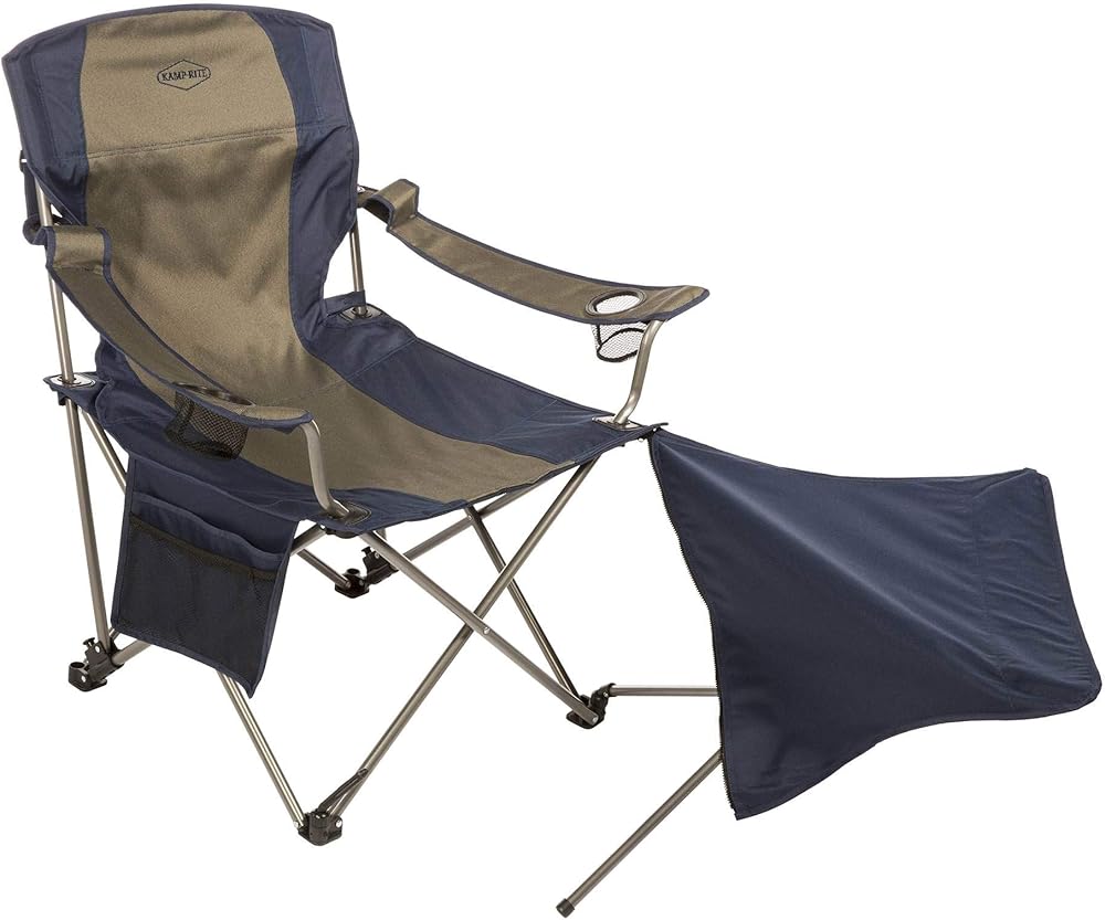 The Kamp-Rite Chair with Detachable Footrest provides the comfort of your favourite easy chair wherever you may roam. Extremely versatile, the footrest section can be completely detached, leaving a standard camp chair to pull up at a picnic table or for gathering around the campfire. The chair has two cup holders to keep your favourite beverages close at hand. The powder-coated steel frame holds up to 300 lbs. and folds easily to store in a convenient carry bag. Open: 49"/28"L x 38"/24.5"W x17"/38"H, Folded: 38"H x 7"W x 7"D.