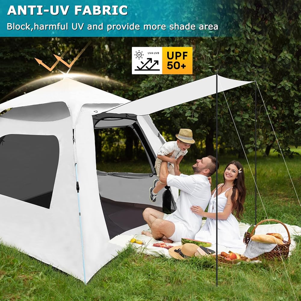 【Pop-up Camping Tent】: OSWIN pop-up camping tent, hydraulic system can quickly deploy the tent in three seconds, allowing you to set up the tent in 1 minute. Just lift the top of the tent, pop up the top mechanism, and click on the bottom joint to get it in place. Easy to disassemble, saving you time. One person can easily install and enjoy the fun of camping.