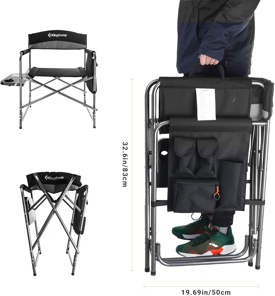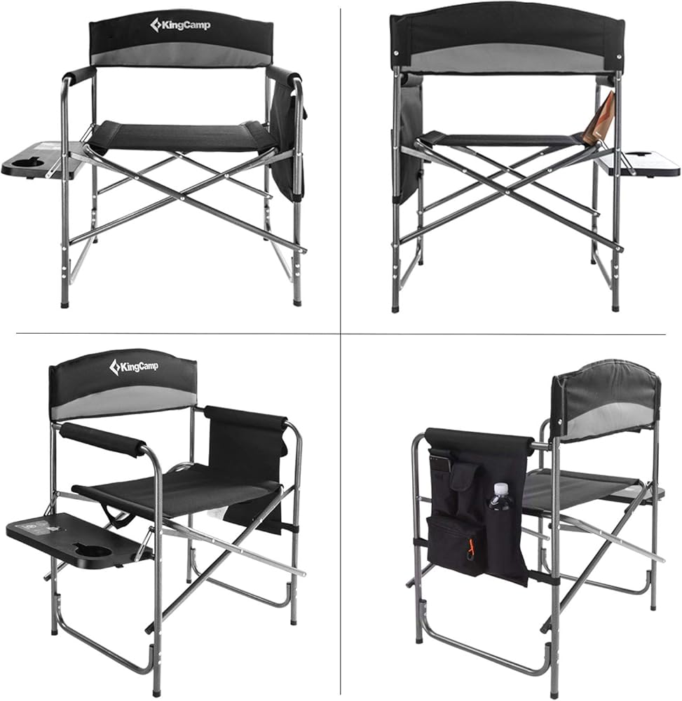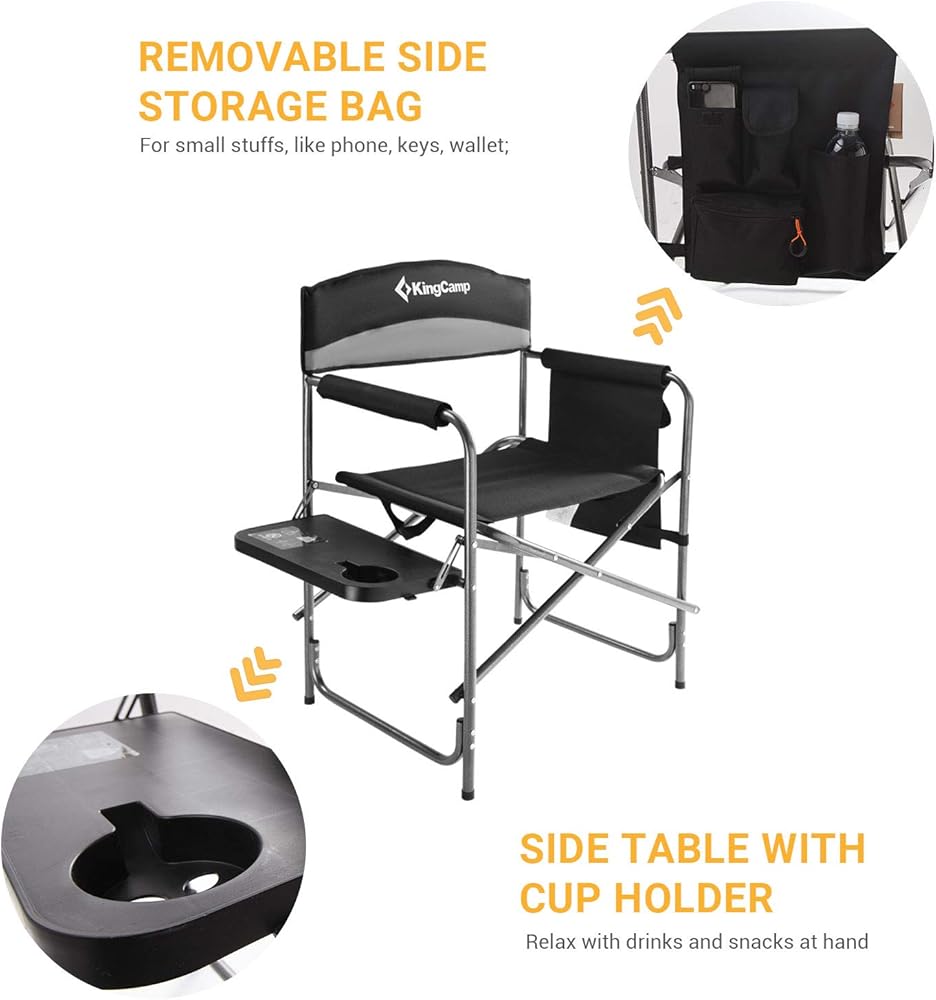 KingCamp Camping Directors Chair with Side Table, Cup Holder and Side Pocket for Adults Heavy Duty Folding Chair Support 396 lbs for Fishing, Picnic, Barbecue, Camping, Garden