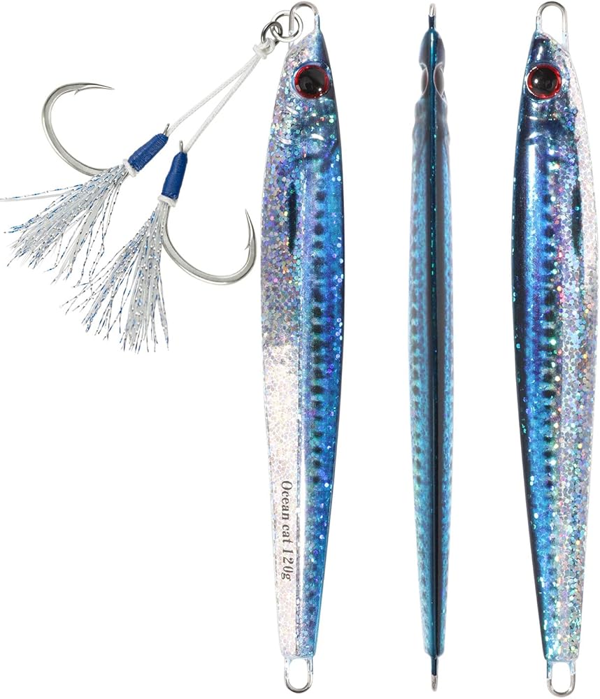 MATERIAL: Sinking Vertical Jigging Jigs are made from the highest quality material and hard to dent or damage.High carbon steel saltwater string fishing hook, strong, durable and anti-corrosion.