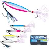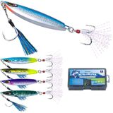 【Double Hook Configuration for Optimal Performance】The head of the jigging lures is equipped with an assist hook with tassels, which can boost attracting fish effect and enhance the hit fish rate. Strengthened treble hooks at the tail reduce the risk of fish escaping. The sharp hook points ensure efficient penetration, increasing your chances of a successful catch.