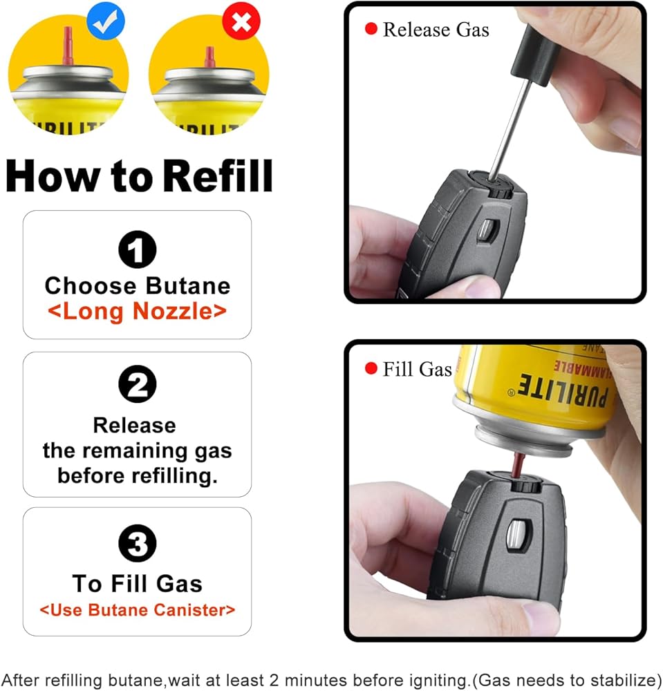【All-in-one Design】We designed this all-in-one cigar lighter to be more convenient for cigar enthusiasts. Our cigar lighter combinates features and sleek design to make it the perfect accessory for an enjoyable cigar experience. With its power dual-flame, cigar punch, and cigar stand, it has everything you need for a luxurious cigar session. (NOTE: The lighter does not contain gas, please fill it with butane fuel before first use)