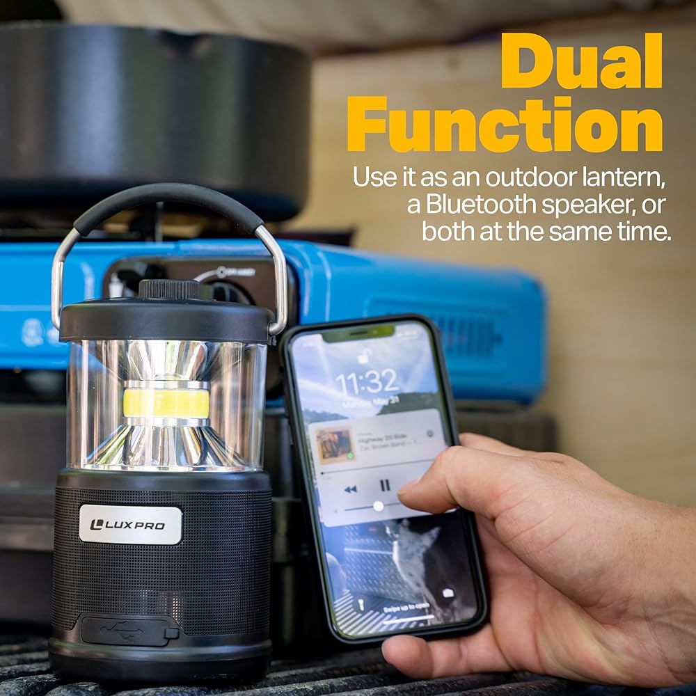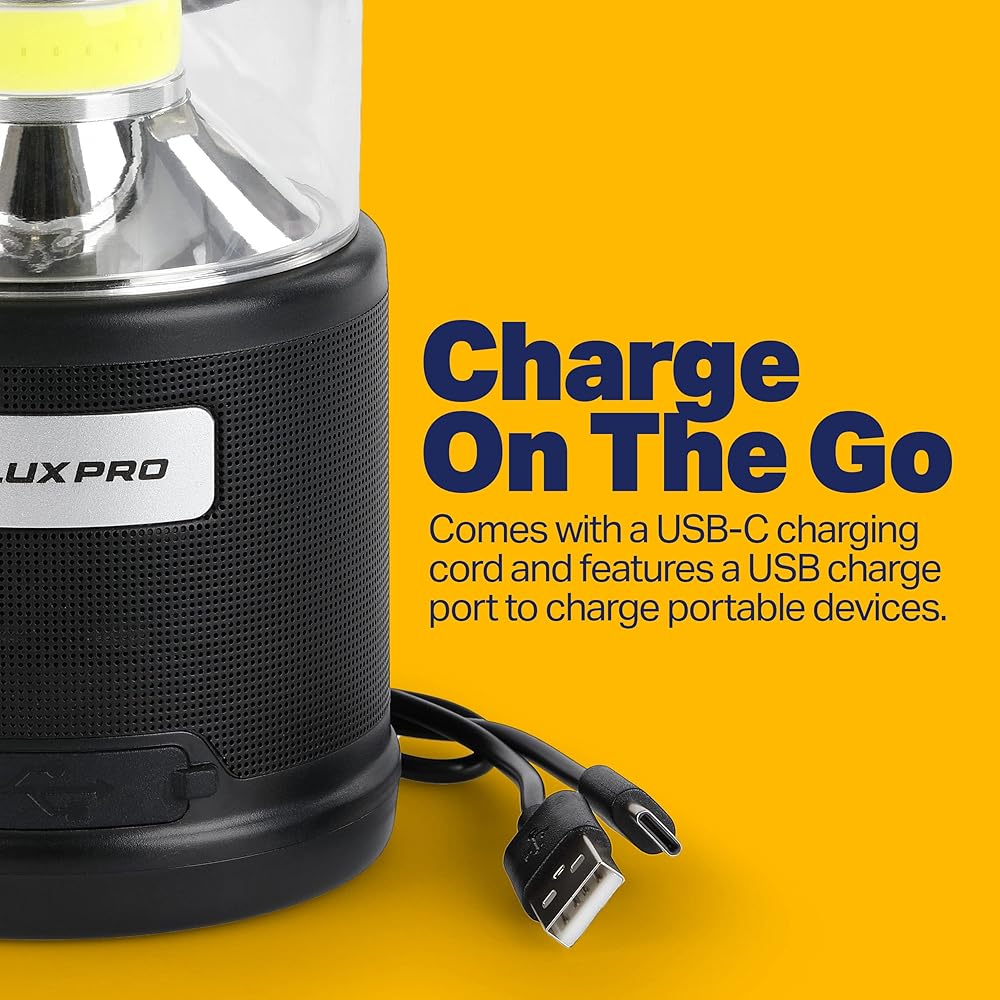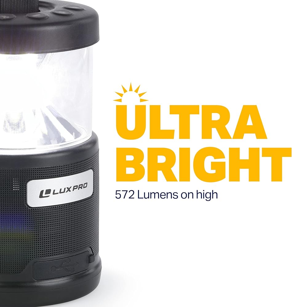 LUXPRO Bright 572 Lumen Rechargeable Bluetooth Speaker Lantern with Device Charging Port