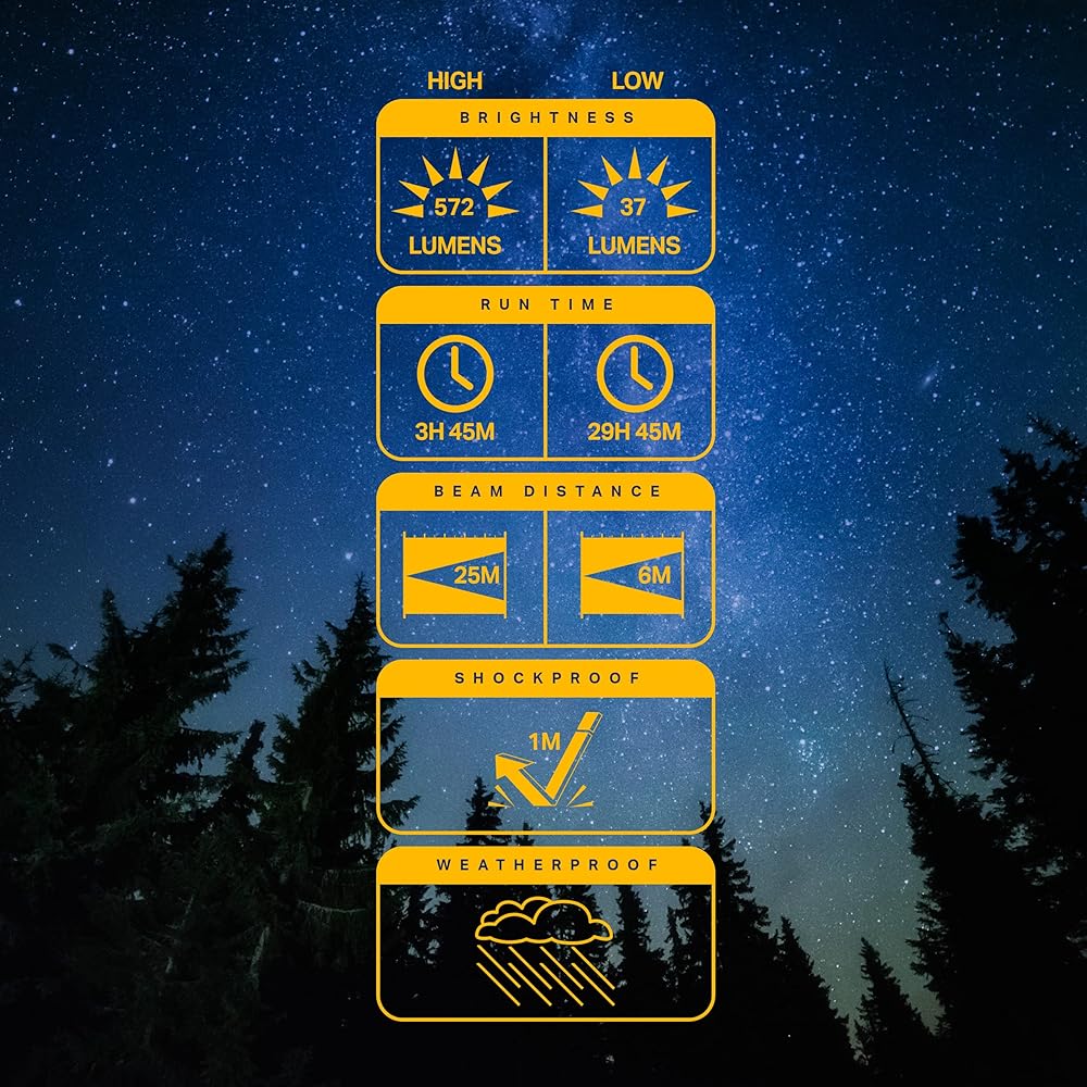 - Indoor & Outdoor Light: A variable mode dial lets you adjust the light from low to high with a lumen output of up to 572 lumens