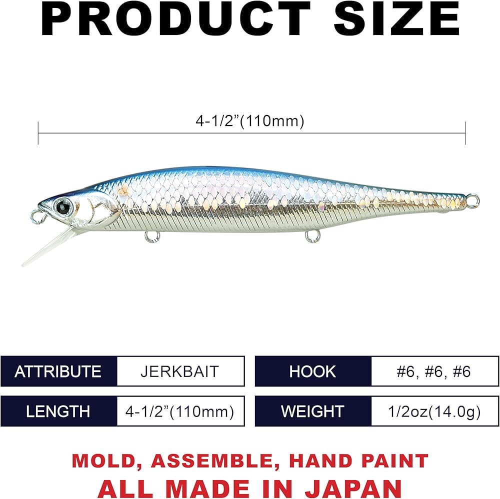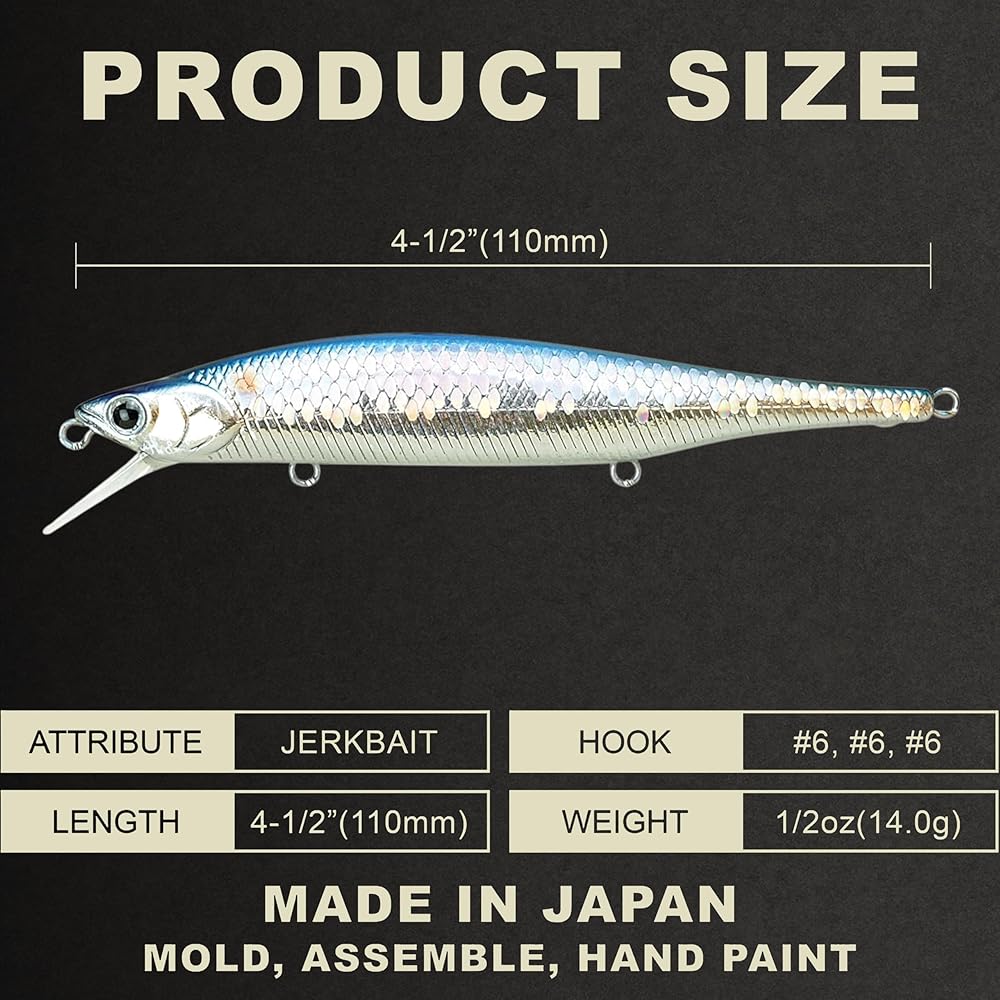 Joining Lucky Craft's legendary line-up of jerkbaits, the Lucky Craft Lightning Pointer 110SP Jerkbait utilizes the proven performance of the original Lightning Pointer but now able to perfectly suspend when paused for those times when the fish are heavily pressured or lethargic. Internally equipped with special brass weights, Lucky Craft Lightning Pointer 110SP Jerkbait delivers bullet-like casts and features a low center of gravity, which allows the bait to suspend in a neutral position during a stop and go retrieve to tempt wary and less aggressive fish into striking. Its tapered tail design also creates a side-to-side wobbling action at the beginning of each retrieve that accurately mimics the movements of a real baitfish trying to erratically swim away from predators. Incredibly productive in warm and cold water, the Lucky Craft Lightning Pointer 110SP Jerkbait's perfect suspending action makes it an ideal candidate for both fast retrieves with short pauses and slow retrieves with long pauses depending on the mood of the fish. Finished with premium treble hooks and covered in a highly detailed paint job, the Lucky Craft Lightning Pointer 110SP Jerkbait continues Lucky Craft's legacy as the best fish-catching jerkbaits ever developed.