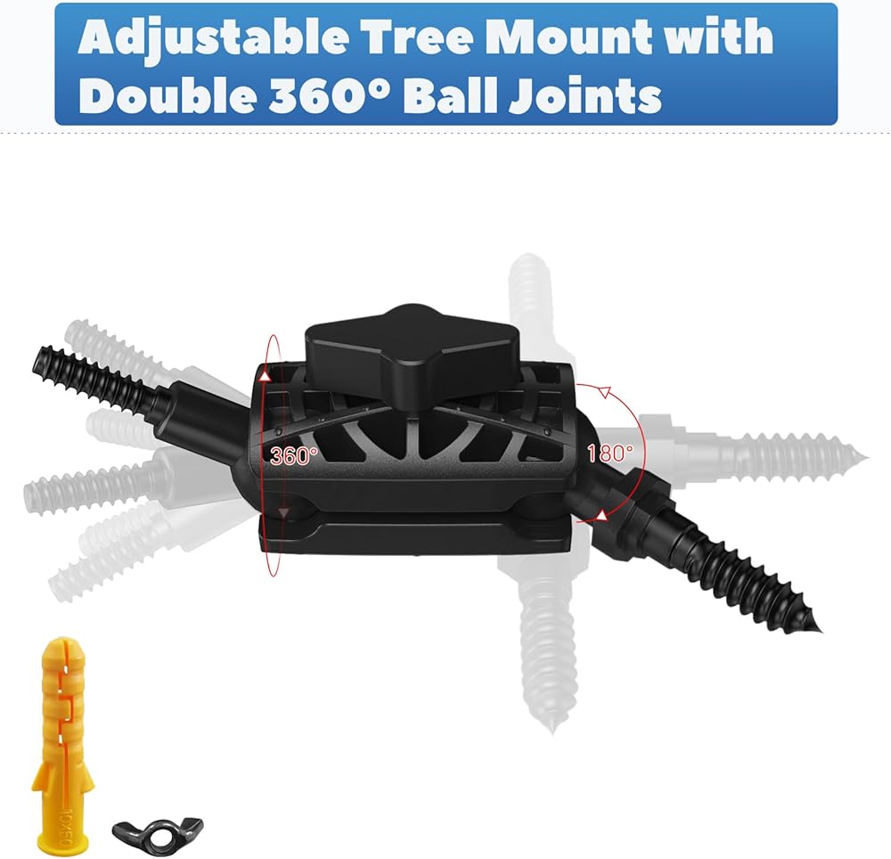 Adjustable Trail Camera Tree Mount: Game Camera Outdoor Mounting Bracket Holder with Double 360° Swivel Tilt Ball Joints, 1 Pack