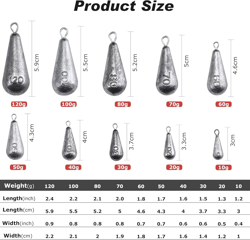 【Wide Range of Sizes】We offer a selection of 10 different sizes for our lead weights. This allows you to choose the perfect weight for your specific fishing needs, ensuring optimal performance and effectiveness in different fishing conditions.