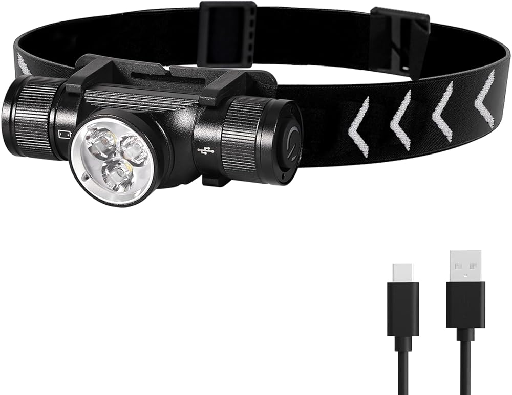 Convenient Rechargeability - The Headlamp Flashlight comes with a Type-C charging port, allowing you to conveniently recharge it using compatible chargers or power banks. Keep your headlamp powered up and ready for action whenever you need it.