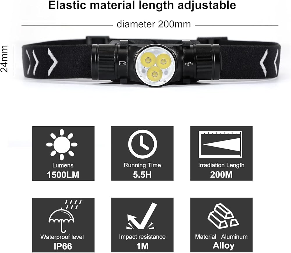 Powerful Illumination - APLOS H330 With an impressive 1500 lumens, this headlamp will light up your surroundings, allowing you to see up to 200 meters ahead. No more stumbling in the dark – enjoy enhanced visibility and expand your horizons.