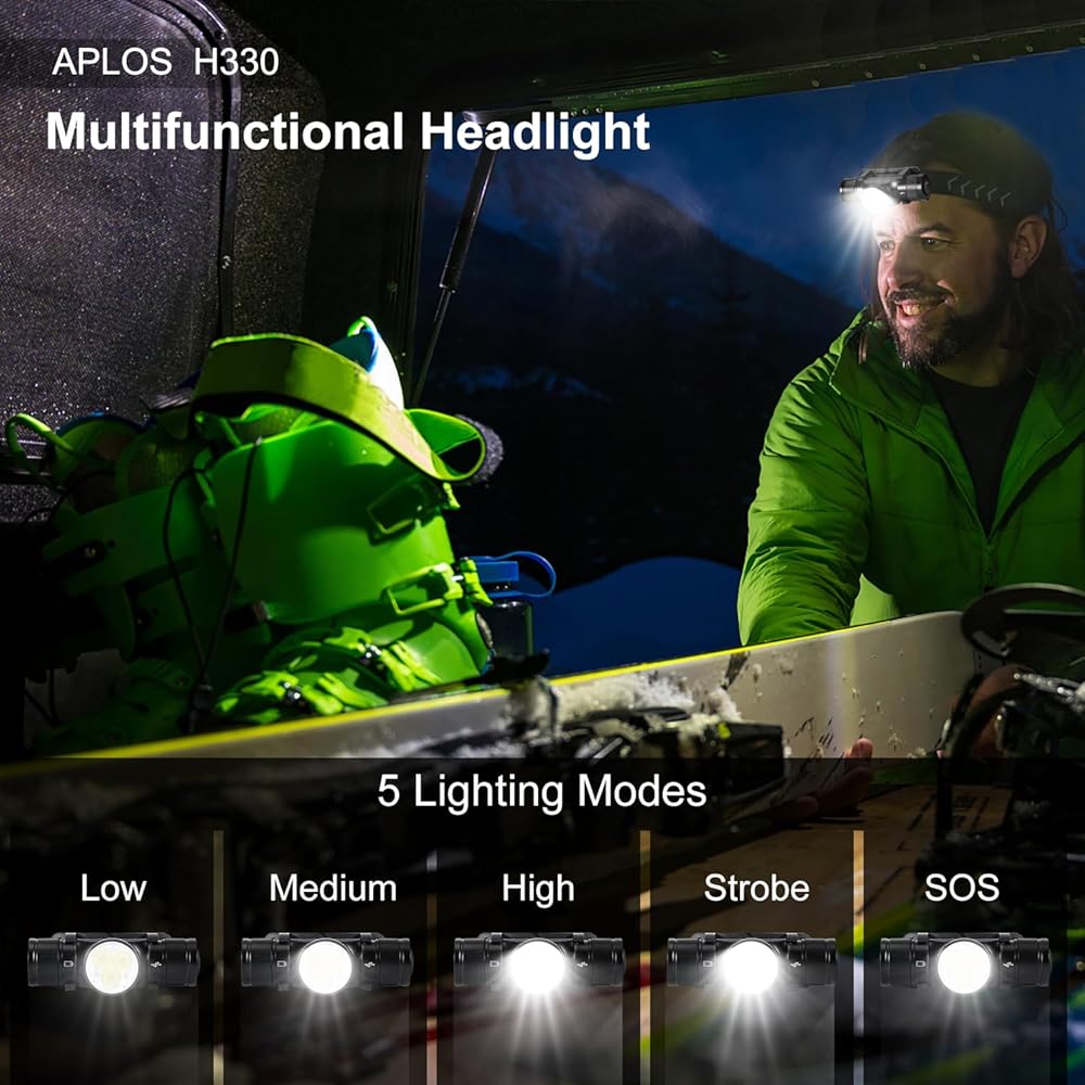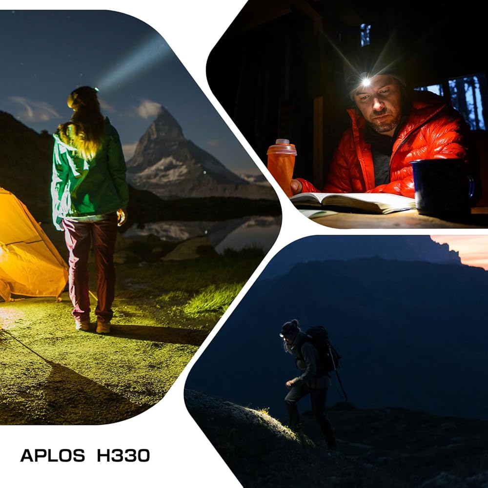 Wide Range of Applications - The H330 Headlamp Flashlight is the perfect companion for a variety of activities. Whether you're camping, hiking, cycling, running, or engaging in any outdoor adventure, this headlamp will provide you with reliable and powerful illumination. It's also suitable for DIY projects, home repairs, and emergency situations. Experience the convenience and versatility of the APLOS H330 in any situation.