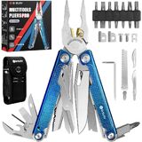 This versatile multitool makes an excellent companion for outdoor adventures and survival situations. Featuring replaceable scalpel blades, a durable saw, and wire cutters, it can handle delicate tasks or heavy duty jobs with ease. The scissors and assortment of screwdriver bits allow you to make repairs or modifications wherever inspiration strikes. Crafted from upgraded stainless steel, this multitool is built to last through years of rugged use. At the heart of it is a pair of pliers for gripping or turning, along with a self-locking mechanism to keep components securely open for working. Pliers weights only 9 ounces, it slips discreetly into any pack or pocket, ready when you need it most. Whether facing the elements on a camping trip or simply tackling household projects, this versatile tool is an invaluable addition to any toolkit.