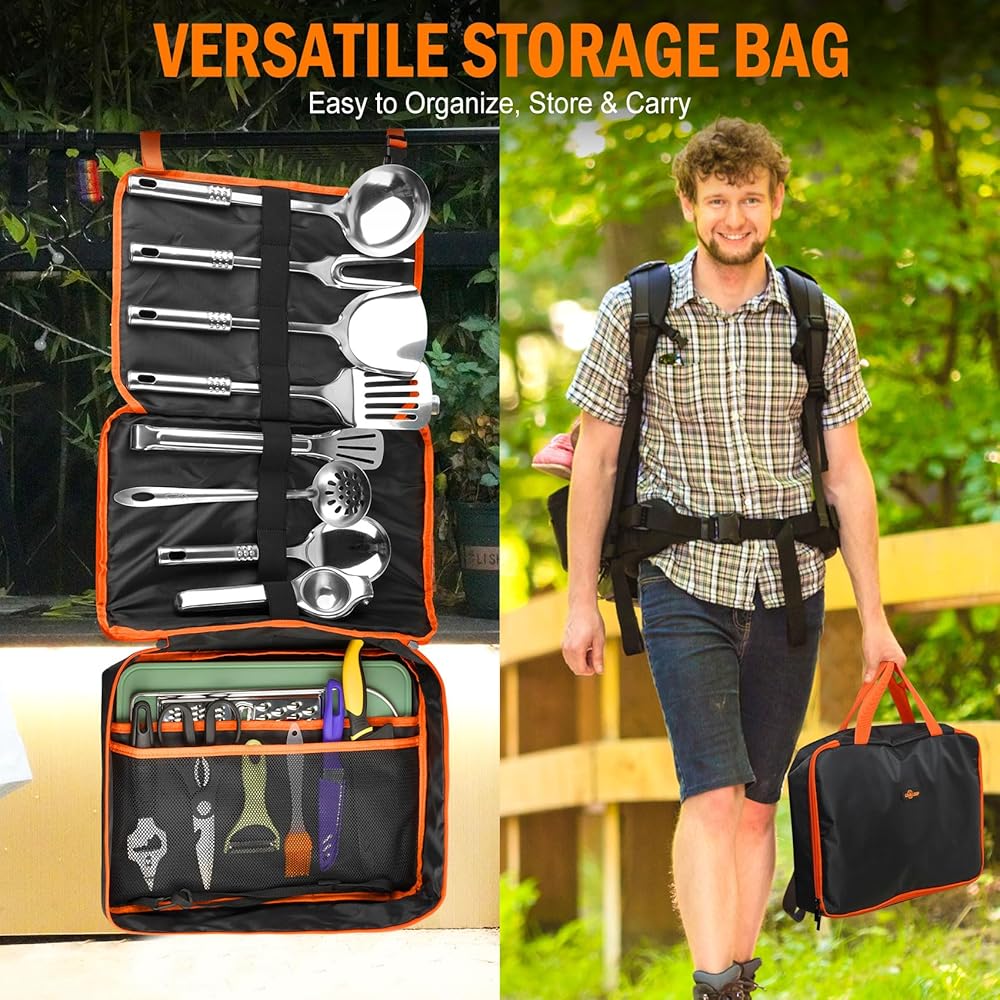 【أساسية للطهي: RV/BBQ/التخييم】مجموعة أدوات الطبخ Gaialoop المكونة من 16 قطعة تغطي معظم أدوات الطبخ التي ستحتاجها في مشهد الطبخ، ومعدات الطبخ الممتازة أثناء التنقل. يمكن استخدامه في مطبخ RV أو حفلات الشواء في الفناء الخلفي أو رحلة تخييم عائلية. هذه ملحقات الطبخ للتخييم يجب اقتناؤها للأشخاص الذين يستمتعون بالتخييم مع الأصدقاء أو العائلات.