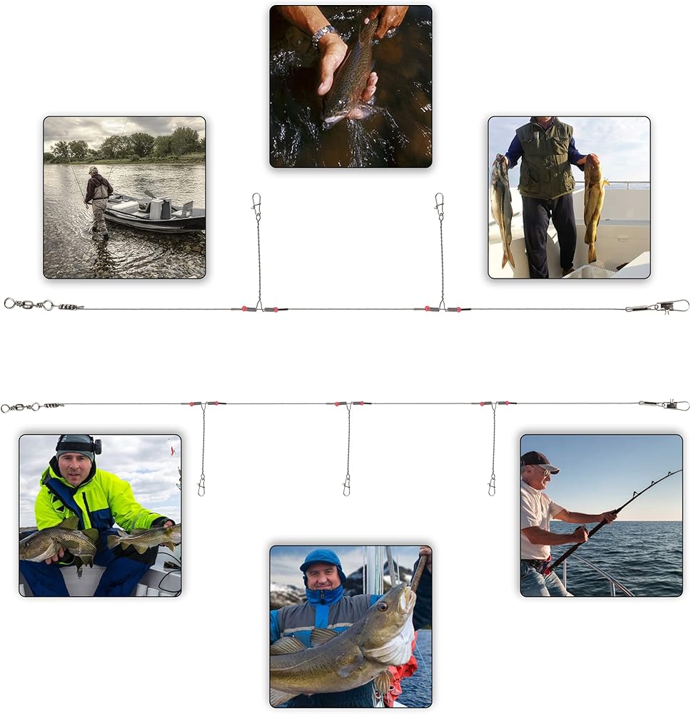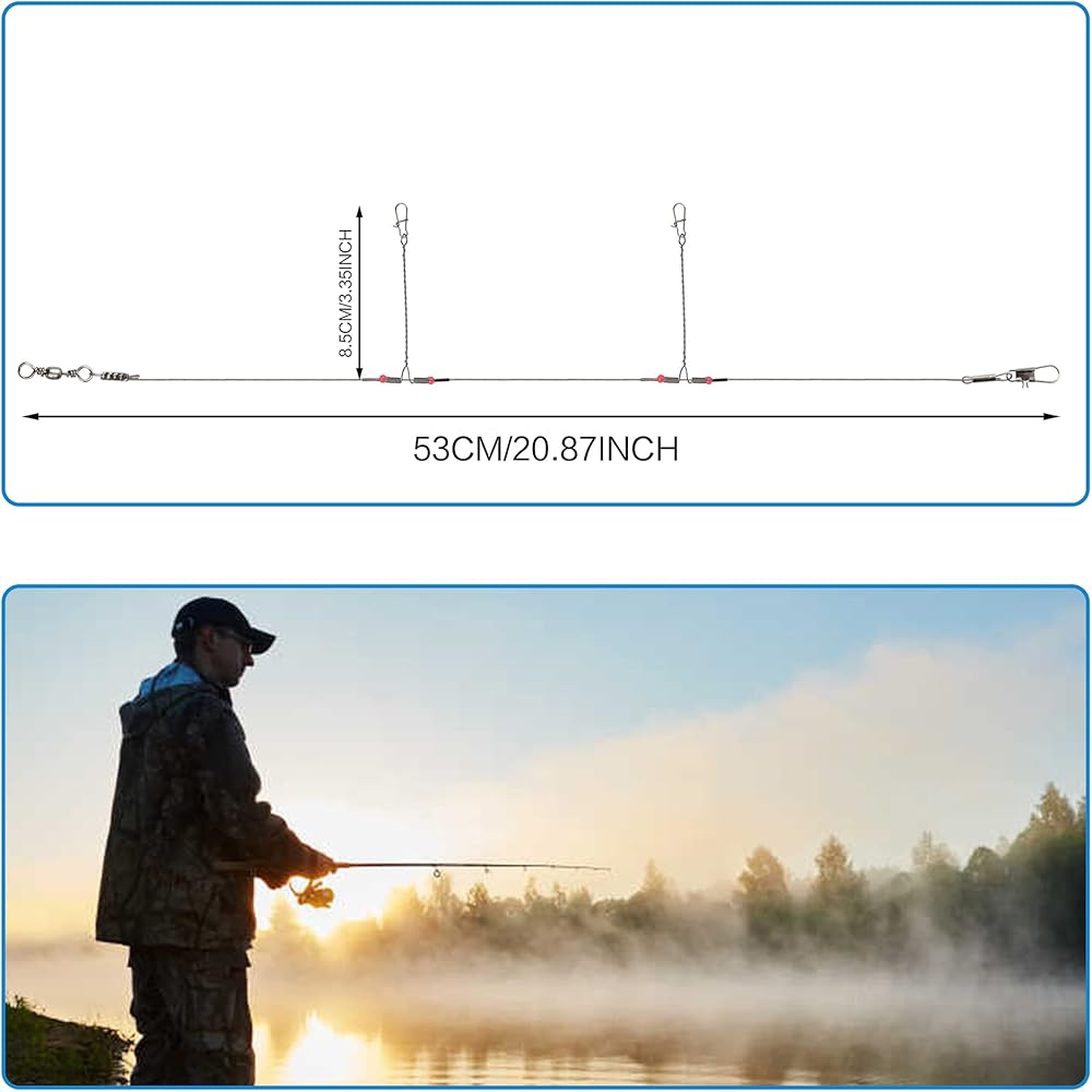 【3Arms Steel Wire】The twisted wire 2 arms are equipped with high quality snap for catching fishes effortlessly.