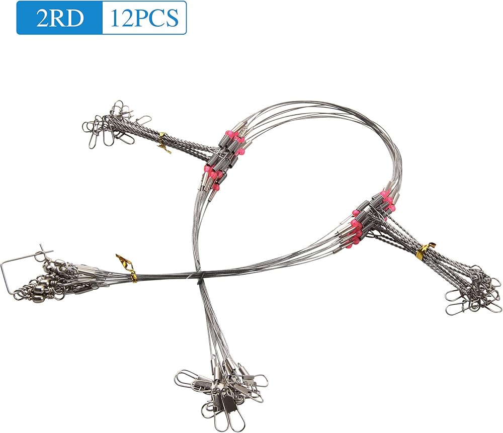 【Package Include】 24PCS stainless steel fishing leaders wire with 2 arms, equipped with snaps, swivels and red beads.