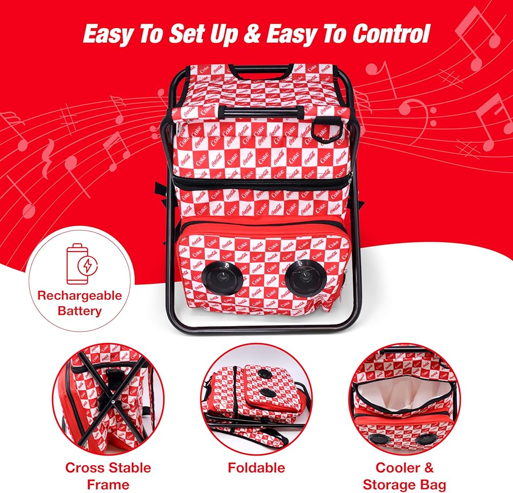 Features:Durable and Foldable: Combining a large-capacity cooler bag, built-in speakers, and a comfortable seat for ultimate convenience.