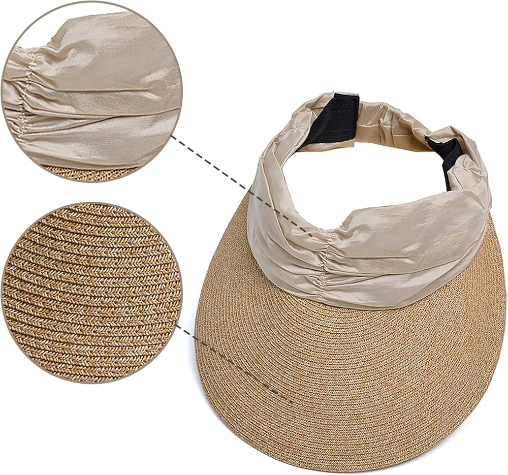 Great sun protection & feel cool in summer - This stylish straw sun visor hat protect you from sun UV/UPF 50+ well. And the open-top design make sure a good ventilation, make you feel cool in the hot summer. And It is also suitable to wear with various hair styles include a ponytail