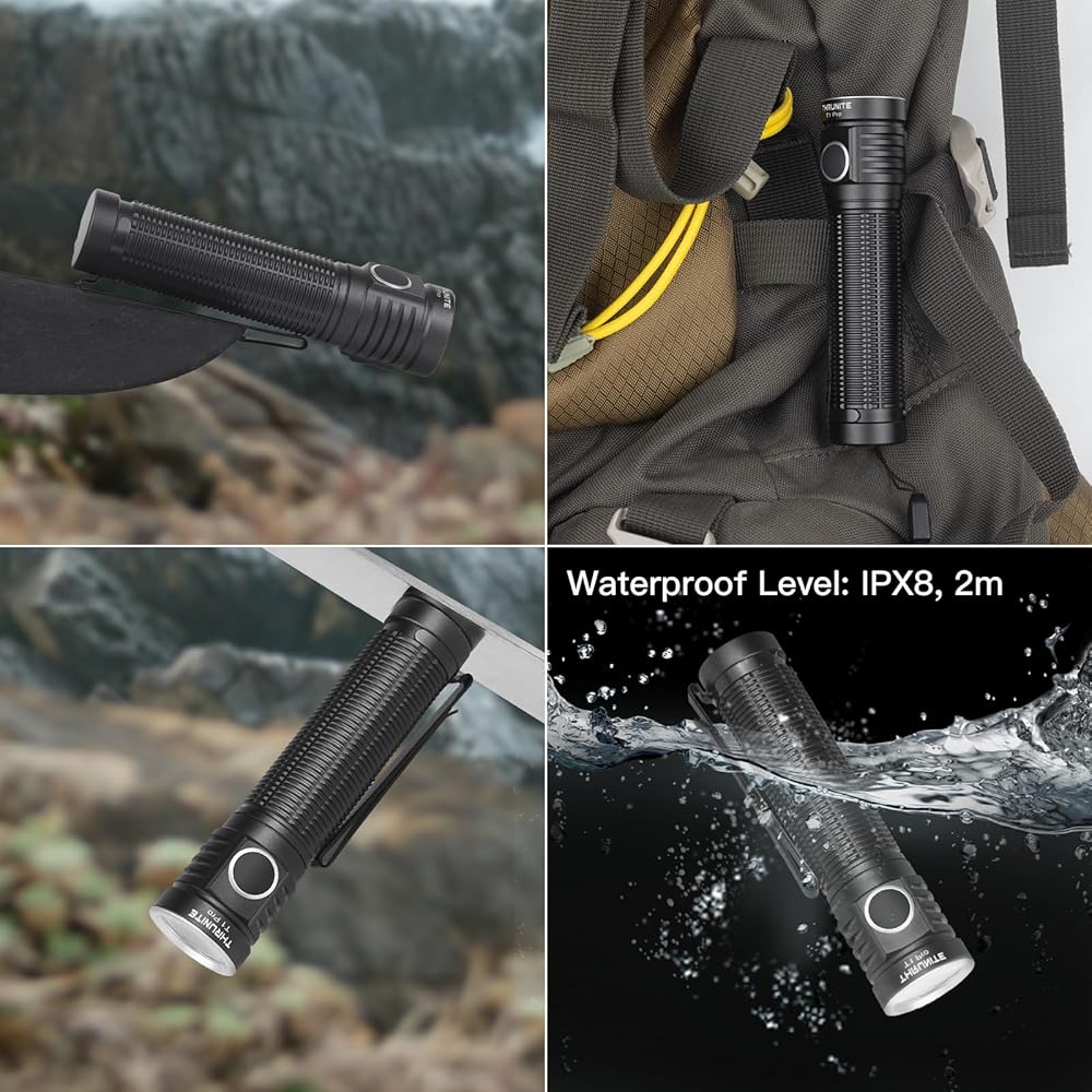 - Bright T1 Pro flashlights paired with CREE XHP50 LED, delivering a maximum output of 1920 high lumens and a beam distance of 196 meters.