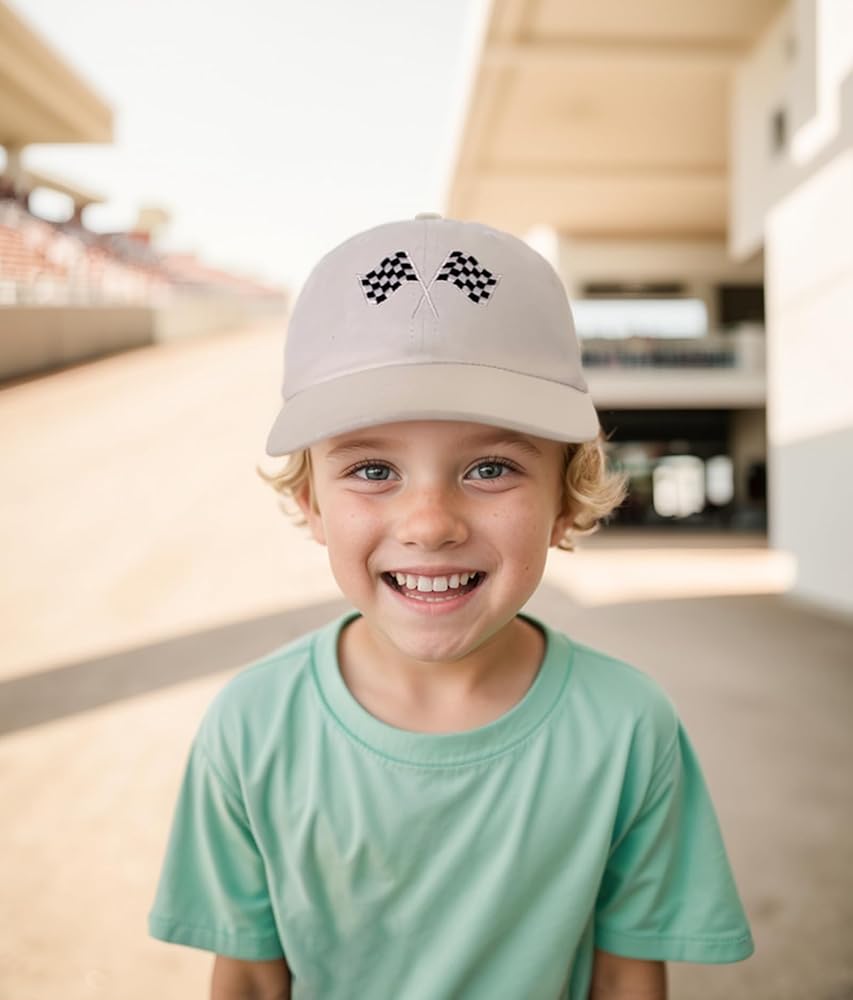 If you're looking for a practical and stylish embroidery baseball cap for a toddler or young child, look no further than this race flag kids baseball hat. Whether it's for a race day, birthday, holiday, or any special occasion.