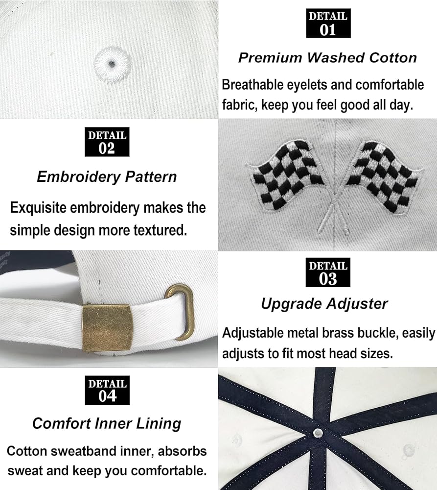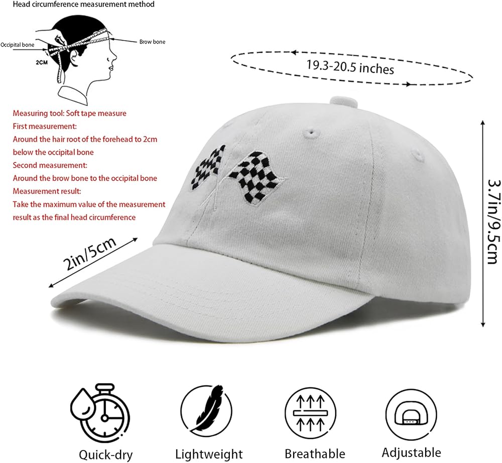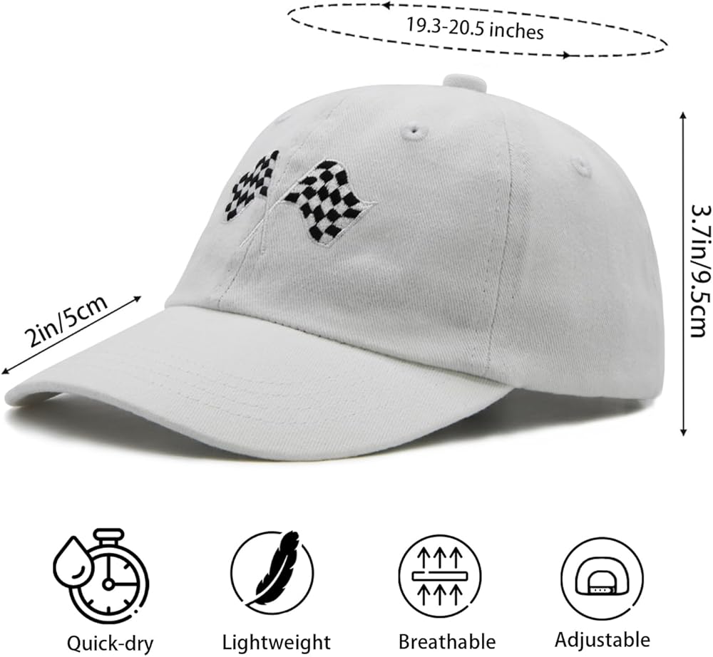 Premium Material: The race car flag baseball hat for kids is made of classic washed cotton, lightweight and durable, breathable and comfortable. Bring kids comforts for all-day. Perfect for your kids to outside.