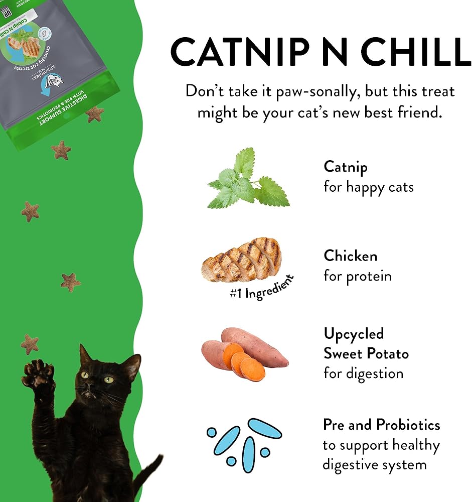 Easy on Cat's Stomach & Digestive Systems: Each Shameless Pets treat is crafted with a specific health benefit in mind, so your pets can get the nutrition they need, even from treat time. This catnip treat is packed with pre & probiotics including B. coagulans for digestive support.