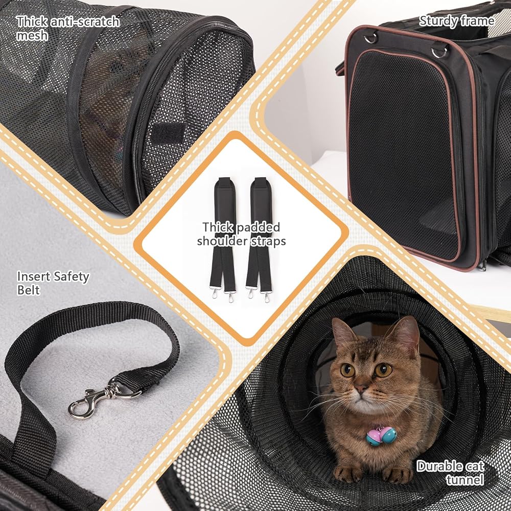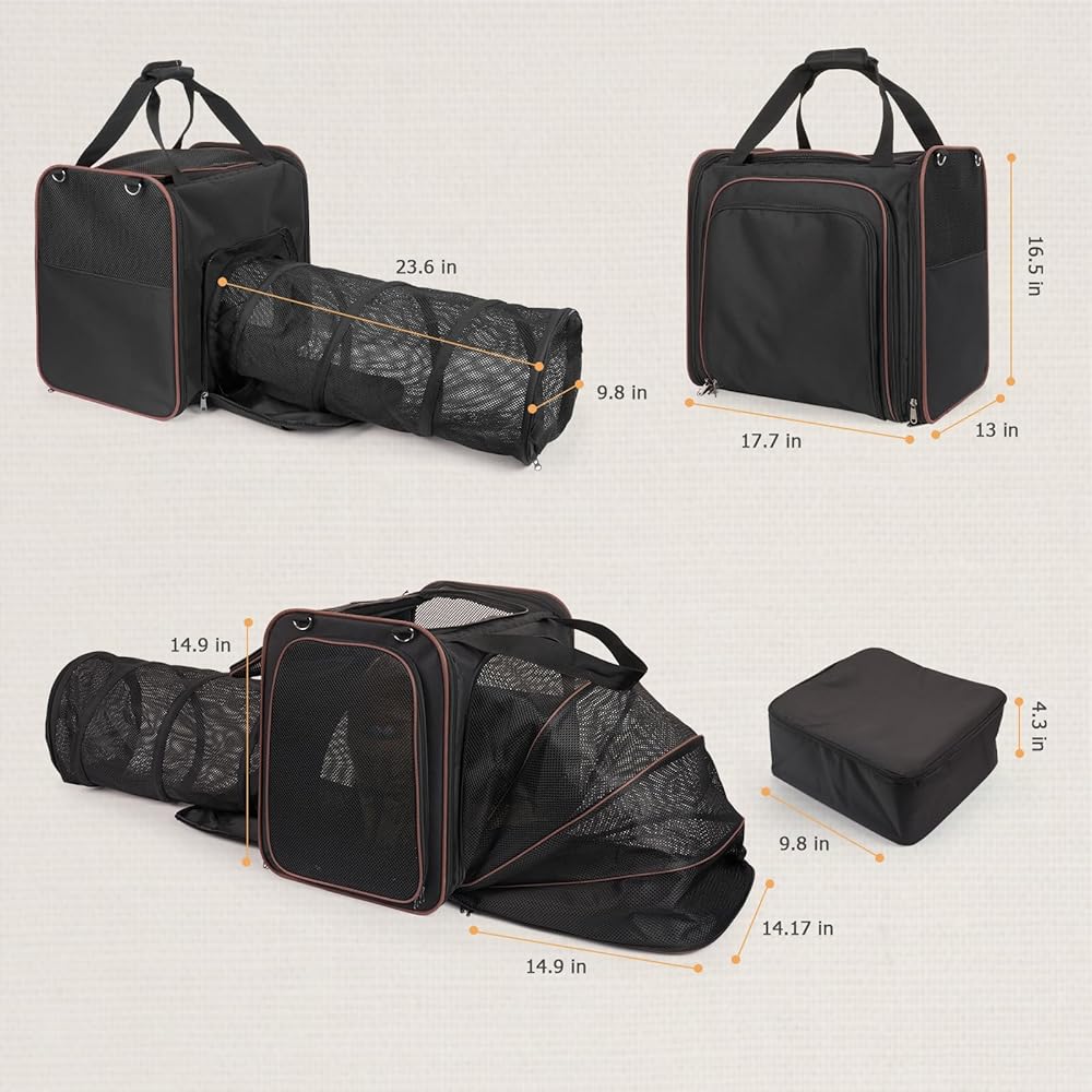 ✅Designed with Cat Tunnel: This large soft cat carrier features an expandable, breathable mesh tunnel design (23.6"L x 9.8"D). The tunnel provides a fun and stimulating environment for your cat, the mesh cat tunnel allows for increased airflow, keeping them entertained during trips to the vet or on outdoor adventures.