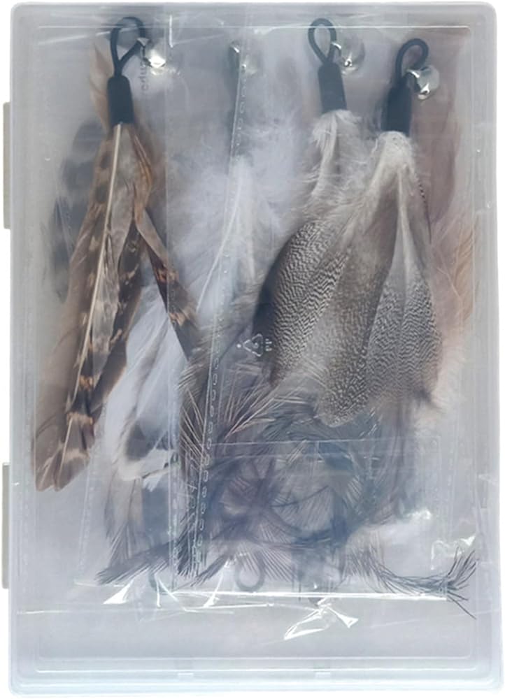 【Extra-Large Natural Feather Replacement】This set includes nine feather refills in total, featuring one particularly gigantic feather measuring 13.8 inches—larger than an average kitten! Handcrafted from ten large feathers (11.8-13.8 inches) and six small feathers (3 inches), plus a delicate bell for added allure, these premium attachments will captivate your cat's attention like never before. There are other interesting worm ,insect, butterfly, tassels strip Accessories.