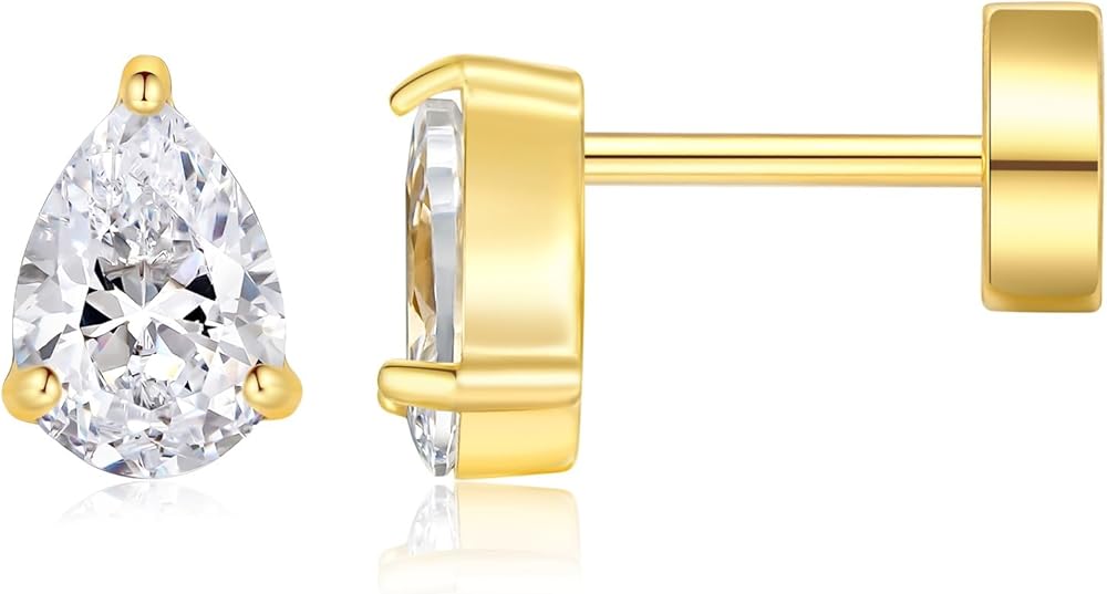 Hypoallergenic Flat Back Earrings: Our dainty flatback Earrings are sold in pair, crafted with surgical steel and 5A CZ diamond with 14Kreal gold plated, they are nickel-free and lead-free, perfect hypoallergenic earrings for sensitive ears. These small gold stud earrings are non-tarnish and waterproof, designed to be worn all day, everyday, including while exercising, shower or sleeping.