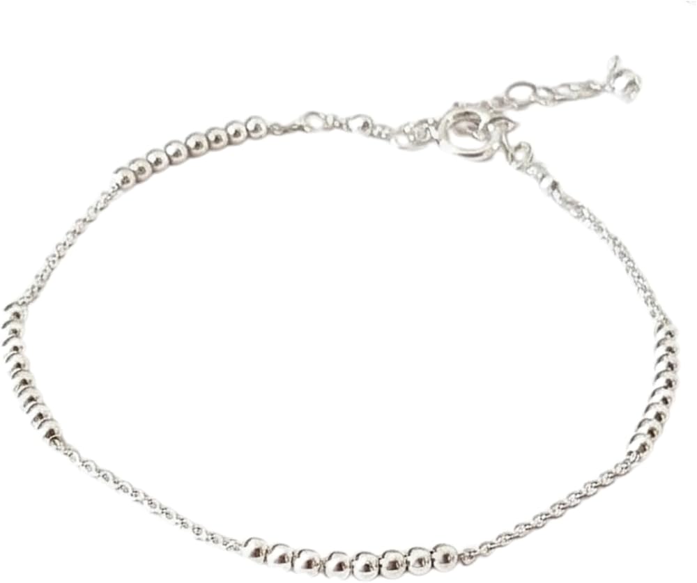 Dainty Sterling Silver Bracelet for Women With Beads, Silver Beaded Chain Bracelet