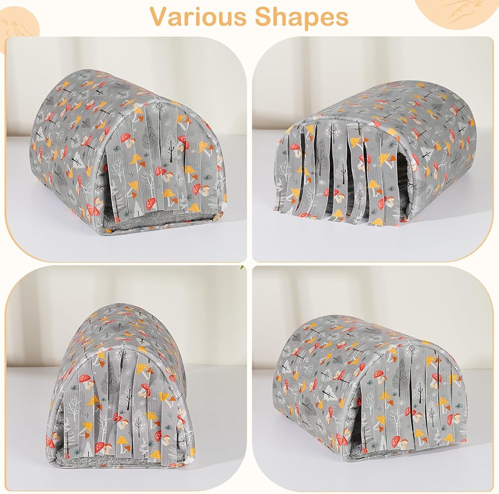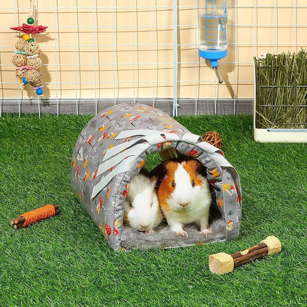 【Adjustable & Easy to Clean】This guinea pig hides have wire supports to keep the shape of the tunnel stable, and the height is adjustable to pets of different sizes. It can be transformed into four different shapes. Both the tunnel and the mat are machine washable for easy cleaning.(Be careful to pull out the iron wire before washing) It can keeps your pet's living environment clean and hygienic.