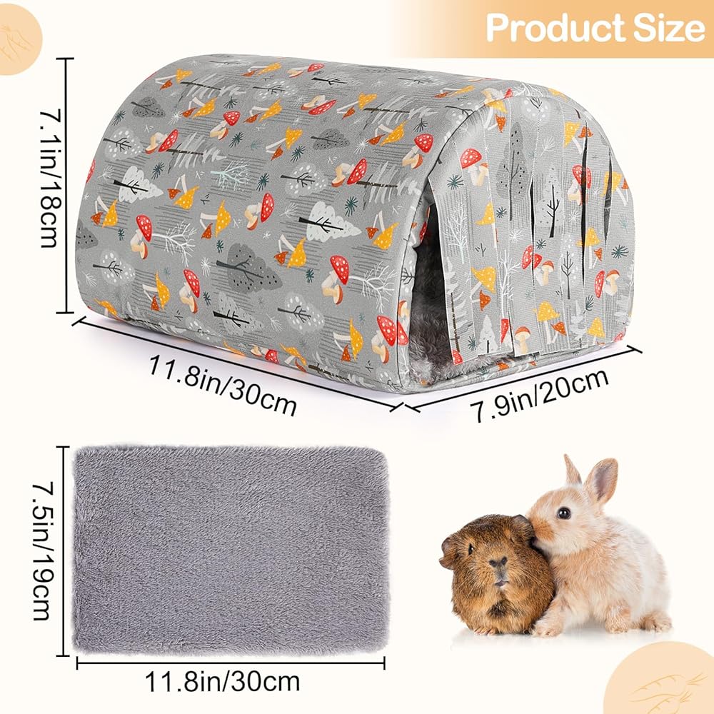 【Suitable Size】This bunny hideout is suitable for guinea pigs, hedgehogs, and other small animals. Measuring 11.8 inches long, 7.4 inches wide, 5 inches high, and the mat size is 15 × 11.8 inches. It is also suitable for other small pets such as rabbits, providing them with an ideal living and activity space.
