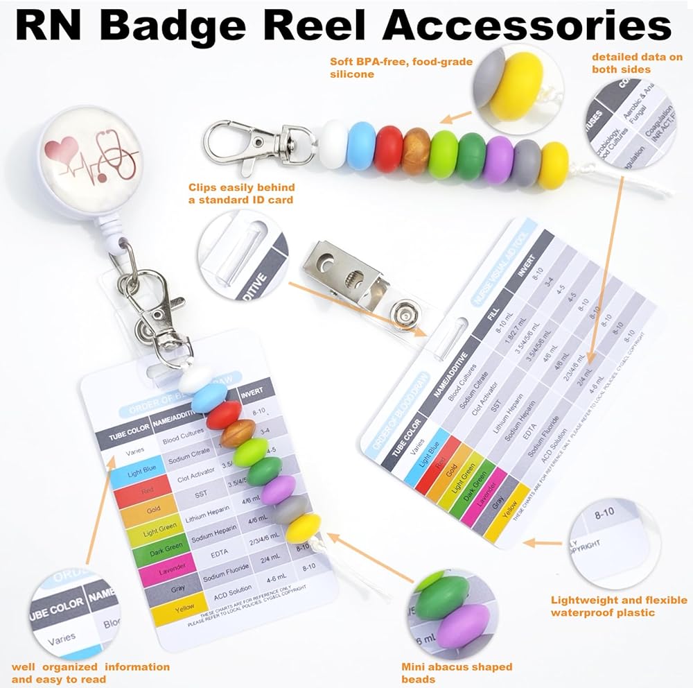 The premium nurse order of blood draw beads is a practical accessory that all nursed and RN students should have. It is compact and lightweight so it won't be a burden to carry even on a long night shift.