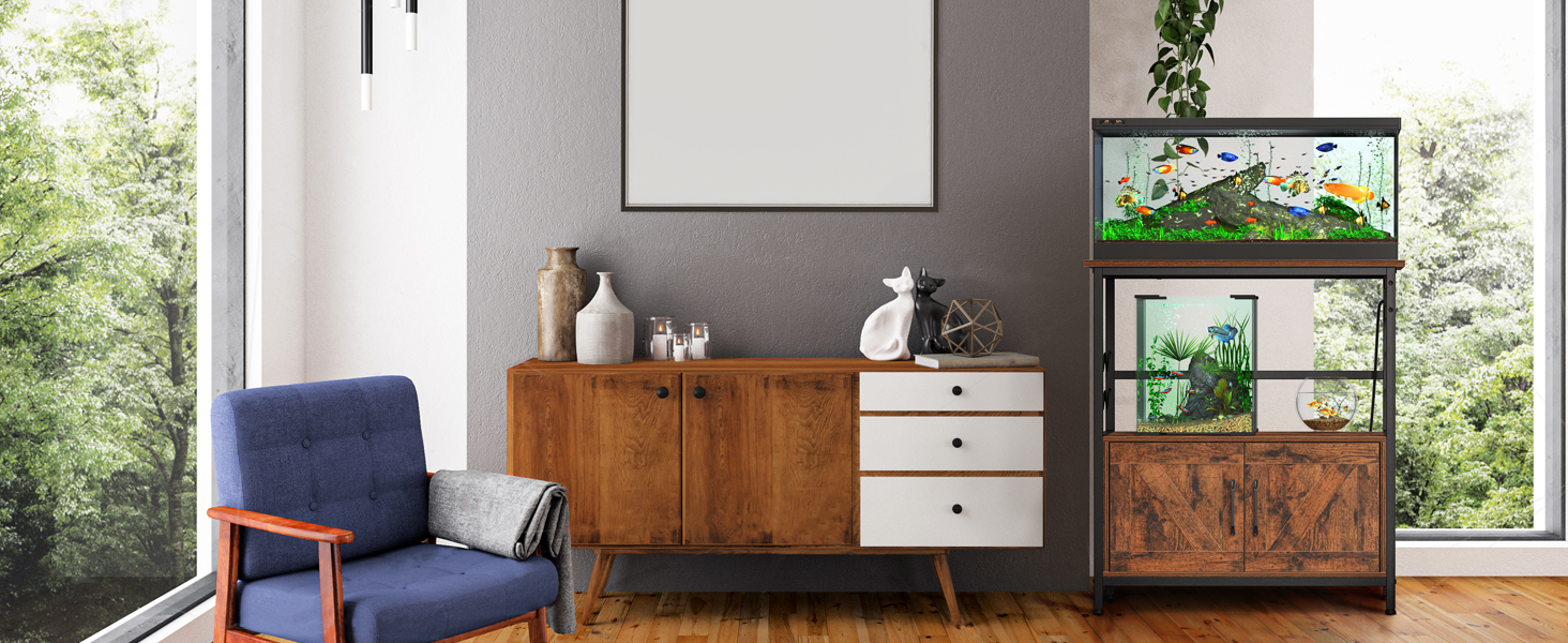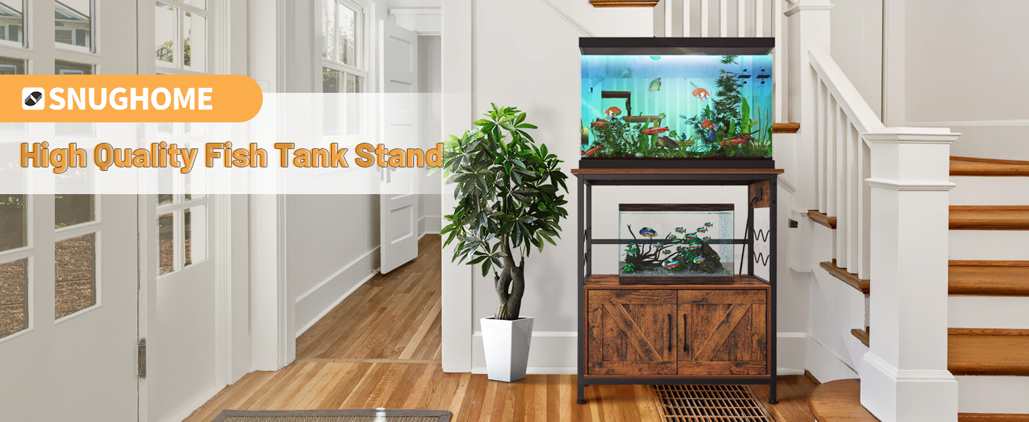 【STRONG SUPPORT】This fish tank stand is constructed with high-quality wooden panels and heavy-duty metal for robust support. It is sturdy, durable, and moisture-resistant, making it easy to clean. Featuring four adjustable feet at the bottom, it ensures maximum stability for your convenience.