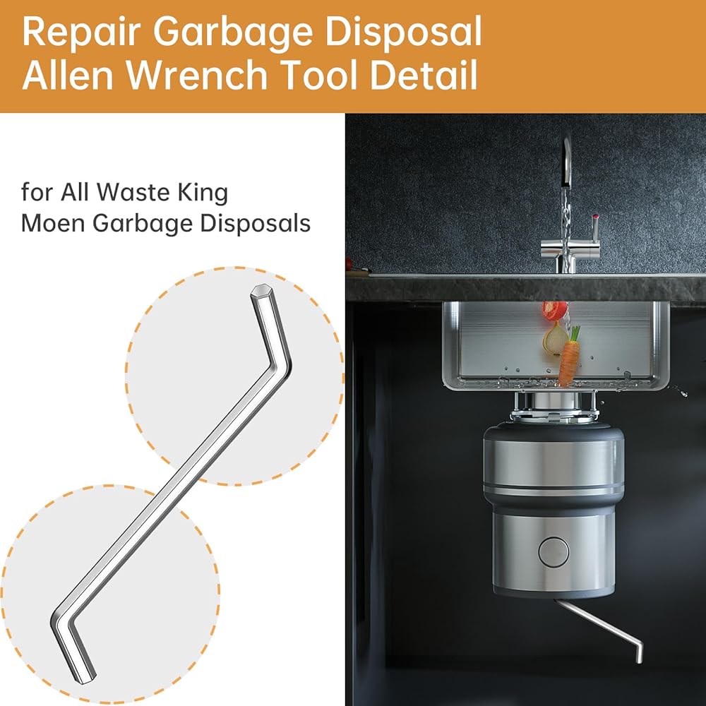 Package Includes : 1*Black Garbage Disposal Repair Wrenchs,2*repair Garbage Disposal Allen Wrench Tool.The Wrench is compatible with all Waste King and Moen garbage disposals, Also compatible with SinkErator WRN-00.