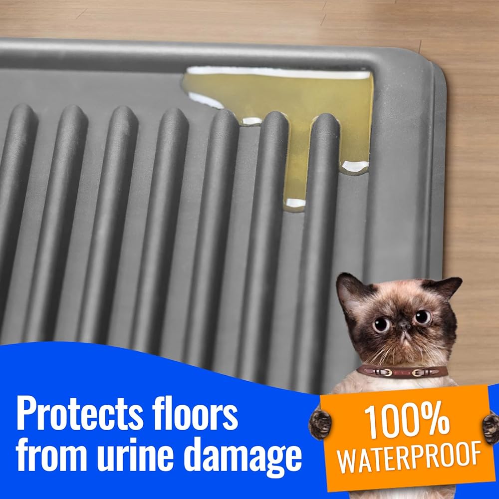 WATERPROOF: The PetNova litter mat uses a 100% waterproof material that is different from other litter mats. Cat urine won't seep through, keeping your carpet and floor protected. It features reinforced, raised edges that prevent urine overflow and effectively protect floors. The mat is durable and suitable for households with multiple cats, keeping the floor and carpet dry.