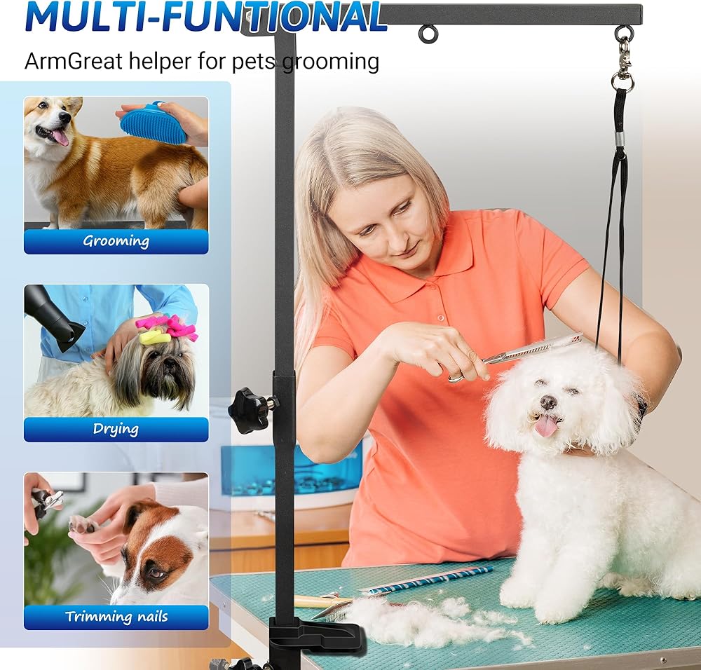 𝐕𝐞𝐫𝐬𝐚𝐭𝐢𝐥𝐞 𝐏𝐞𝐭 𝐆𝐫𝐨𝐨𝐦𝐢𝐧𝐠 𝐓𝐨𝐨𝐥: dog grooming arm is perfect for bathing, drying, hair cutting, and nail trimming both at home and in a professional setting. It's made with high-quality metal to ensure its durability and longevity.