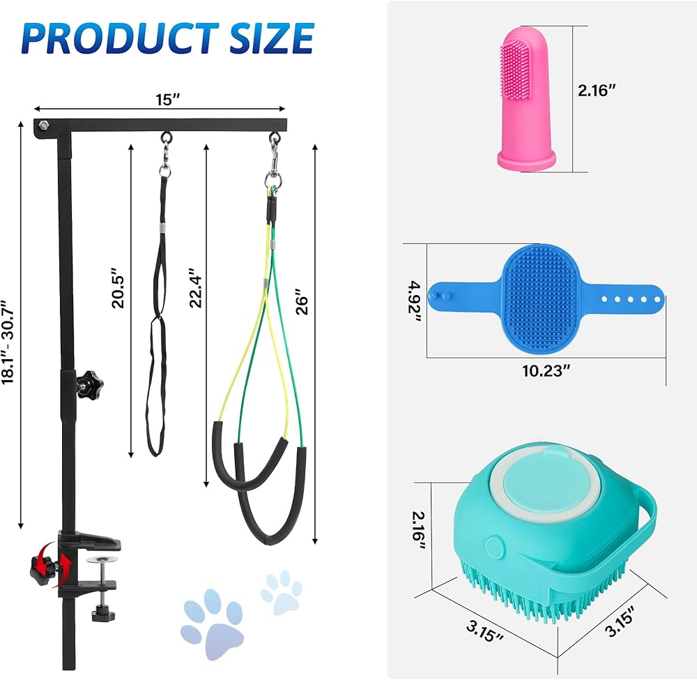 Dog Grooming Arm with 5pcs Pet Bath Brush - 35" Pet Grooming Table Arm with Adjustable No Sit Haunch Holders, Dog Grooming Stand with Loop Noose - Ideal for Small & Medium Dogs