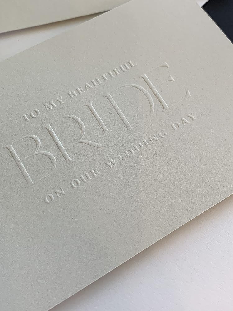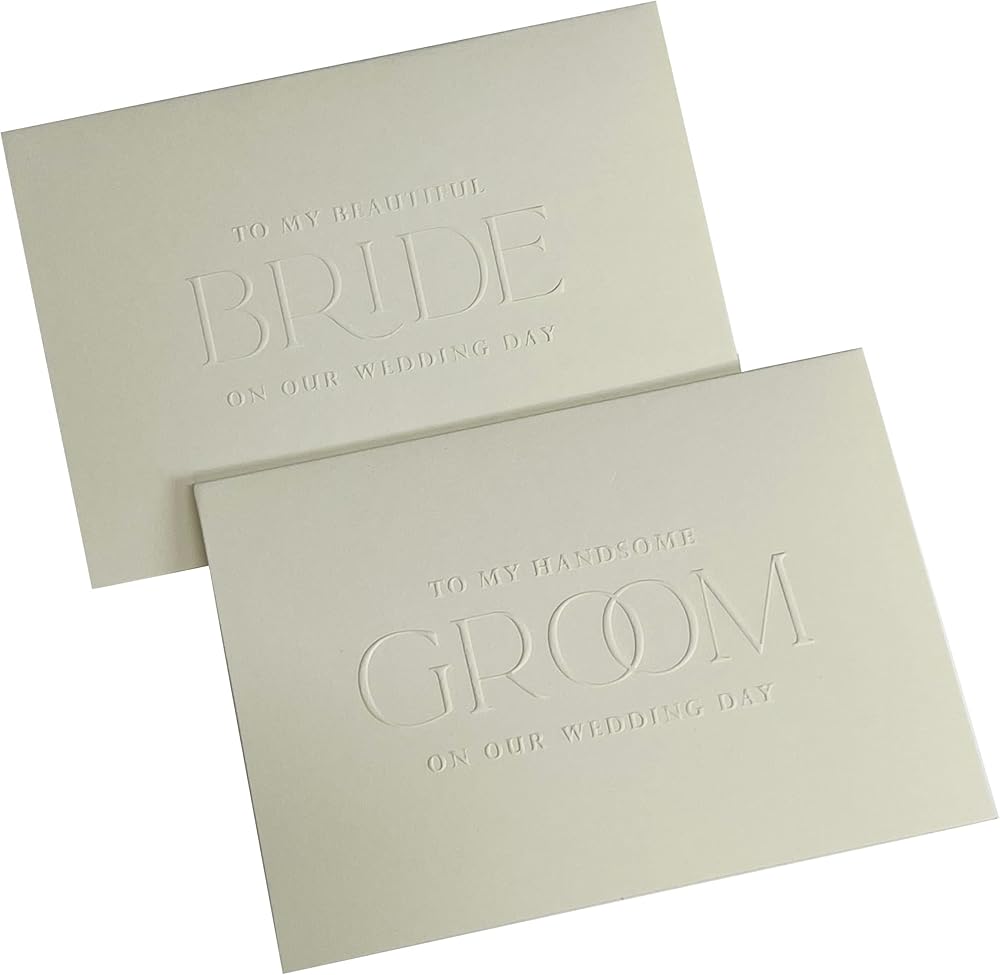 Bride & Groom Card size is 3.5 x 5 folded and 5x7 open. Set of 2 Cards - Cream Cardstock Includes 2 white envelopes in a polybag These cards make a great gift for engaged couples. Handmade on a 1912 Chandler & Price Letterpress. Please note the size of these cards as they are perfect for a wedding day note. If you are looking for bigger cards with more space to write, we encourage you to check out our vow books.