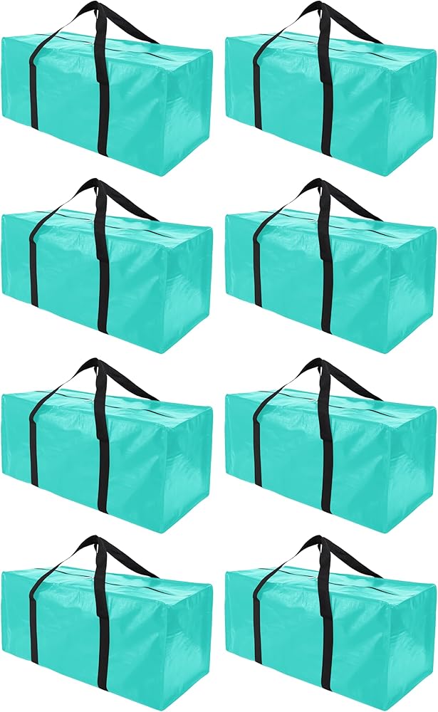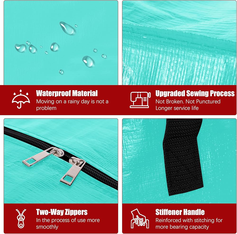 8 Pack Extra Large Moving Bags with Zippers & Carrying Handles, Heavy-Duty Storage Tote for Space Saving Moving Storage, Fold Flat, Alternative to Box and Bin,Aquamarine